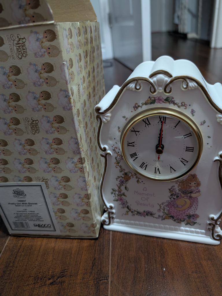 Selling a Precious Moments mantle clock, model Pretty Girl With Bonnet. It's in great shape and comes with the original box. A Moment of Beauty is written on the clock face!