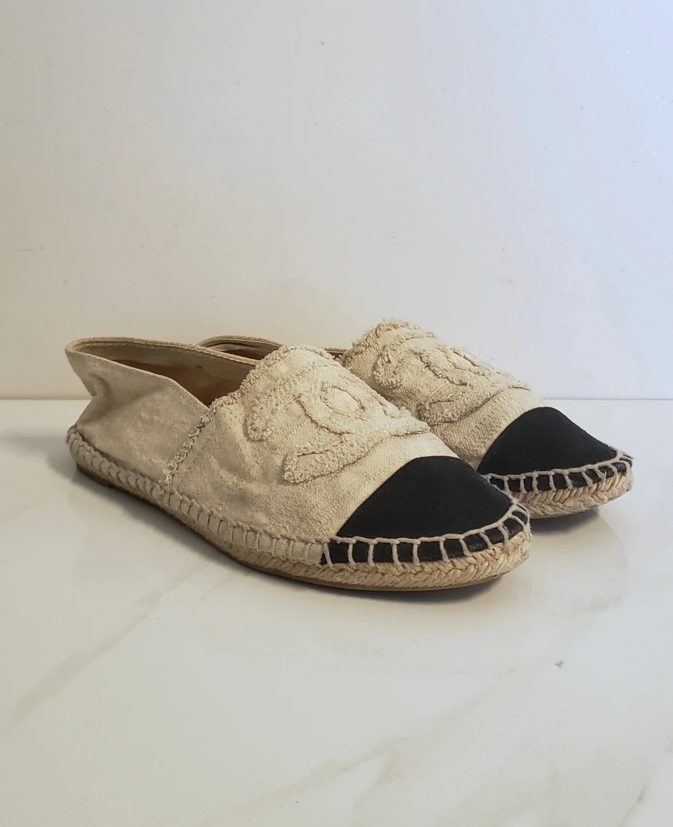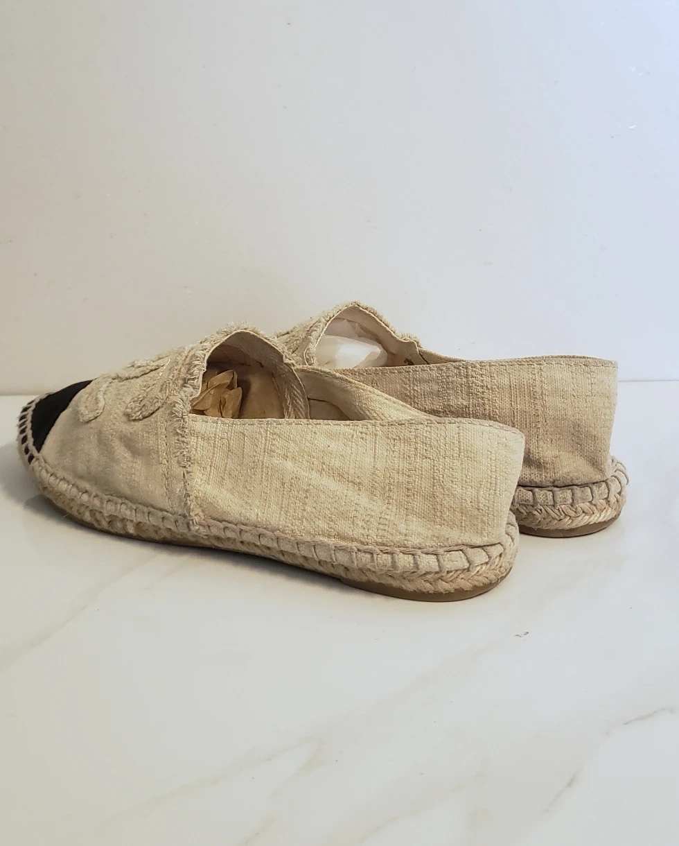 Raw edge linen exterior in GUC, soles are worn. Fit size 6/6.5.