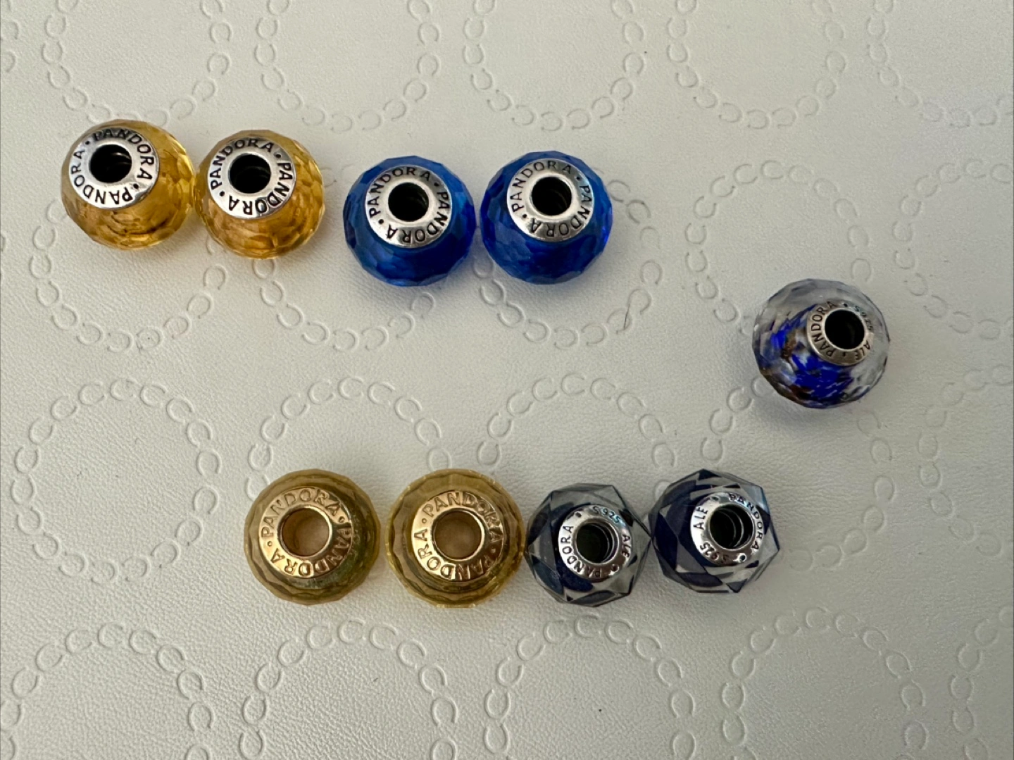 35Selling a selection of Pandora Murano glass charms! These are in great condition and would make a lovely addition to any Pandora bracelet. Available in various colours including gold and blue.
