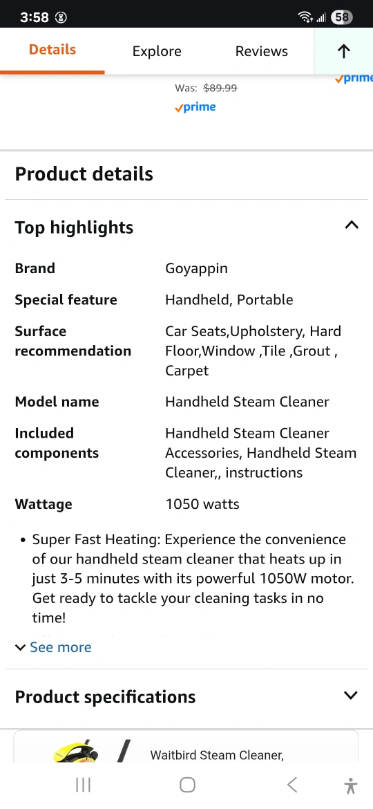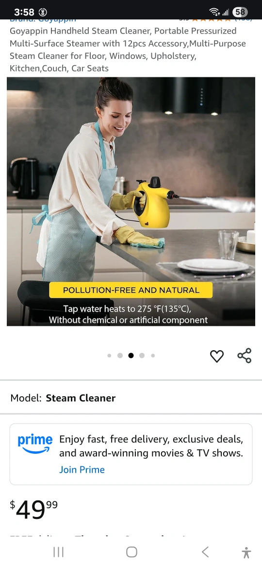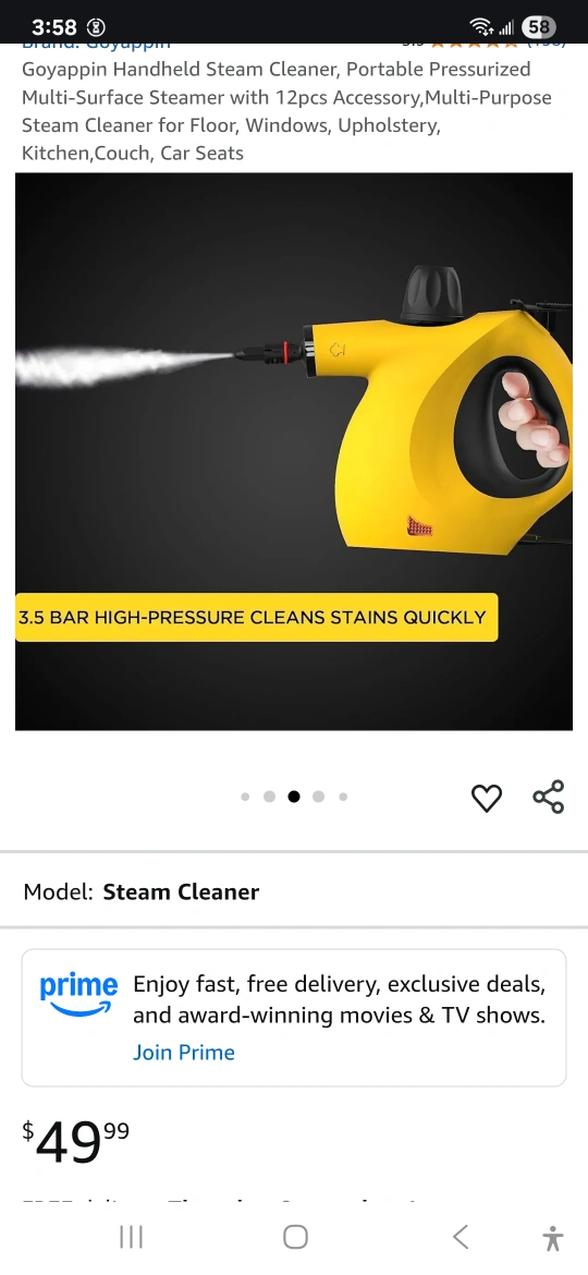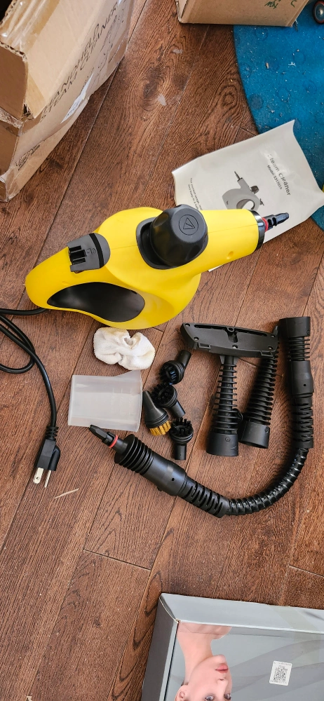 Selling a Goyappin handheld steam cleaner in yellow. This portable pressurized multi-surface steamer comes with 12 accessory pieces. It's great for cleaning floors, windows, upholstery, kitchens, couches, and car seats.