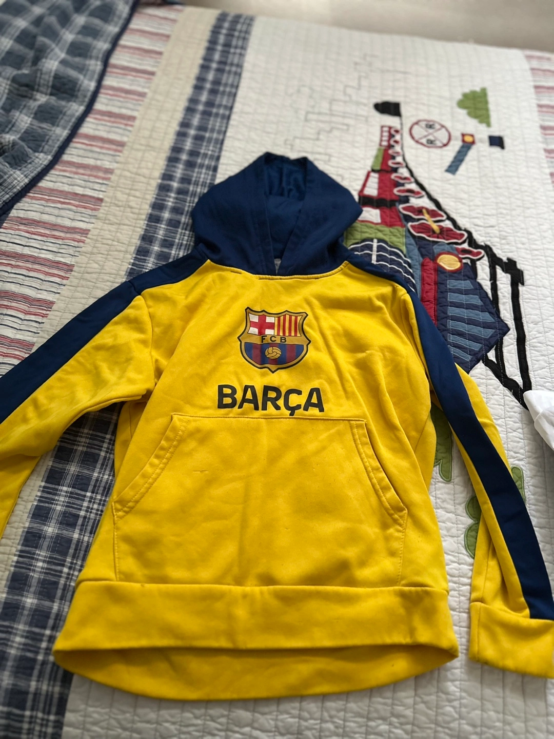 Selling a variety of kids' hoodies! There's a Raptors hoodie, a blue Converse All Star hoodie, a Barca hoodie, and a grey Roots hoodie. All in good condition and ready for a new home! 10-12 years old (size Medium kids )