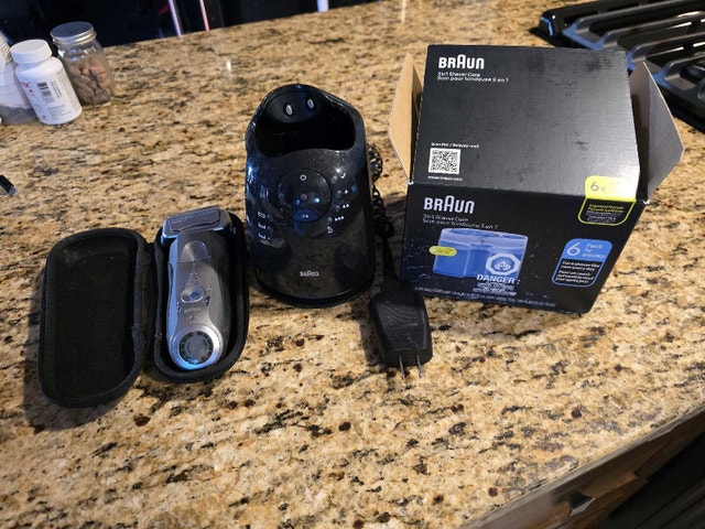 Used for a bit and then upgraded to the series 9. Been sitting in the drawer for years so still in excellent condition. The cleaning station solution alone was over $50.