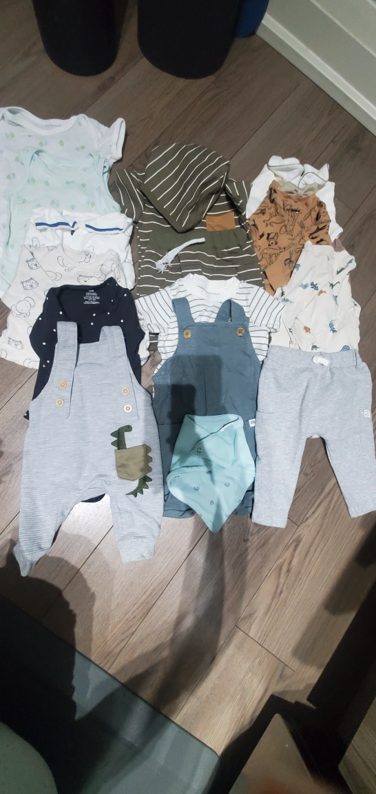 Selling a bundle of assorted baby clothes! There are various sizes and styles included, perfect for a growing little one. All items are in good condition and ready for a new home. A great way to stock up on baby essentials!