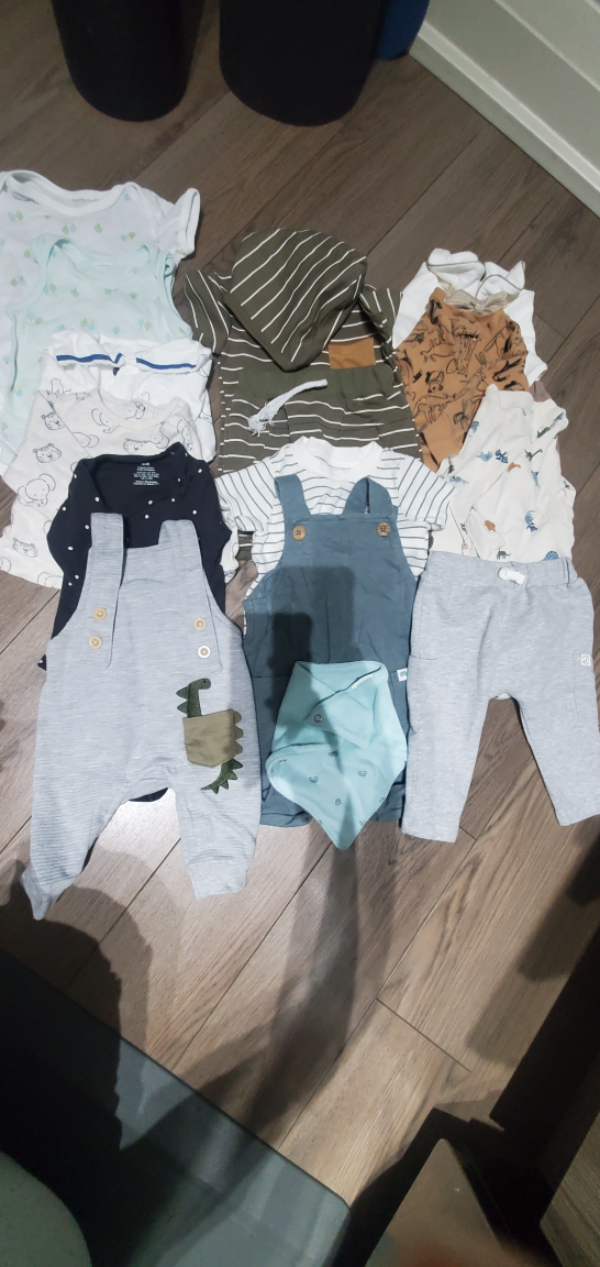 Selling a bundle of assorted baby clothes! There are various sizes and styles included, perfect for a growing little one. All items are in good condition and ready for a new home. A great way to stock up on baby essentials!
