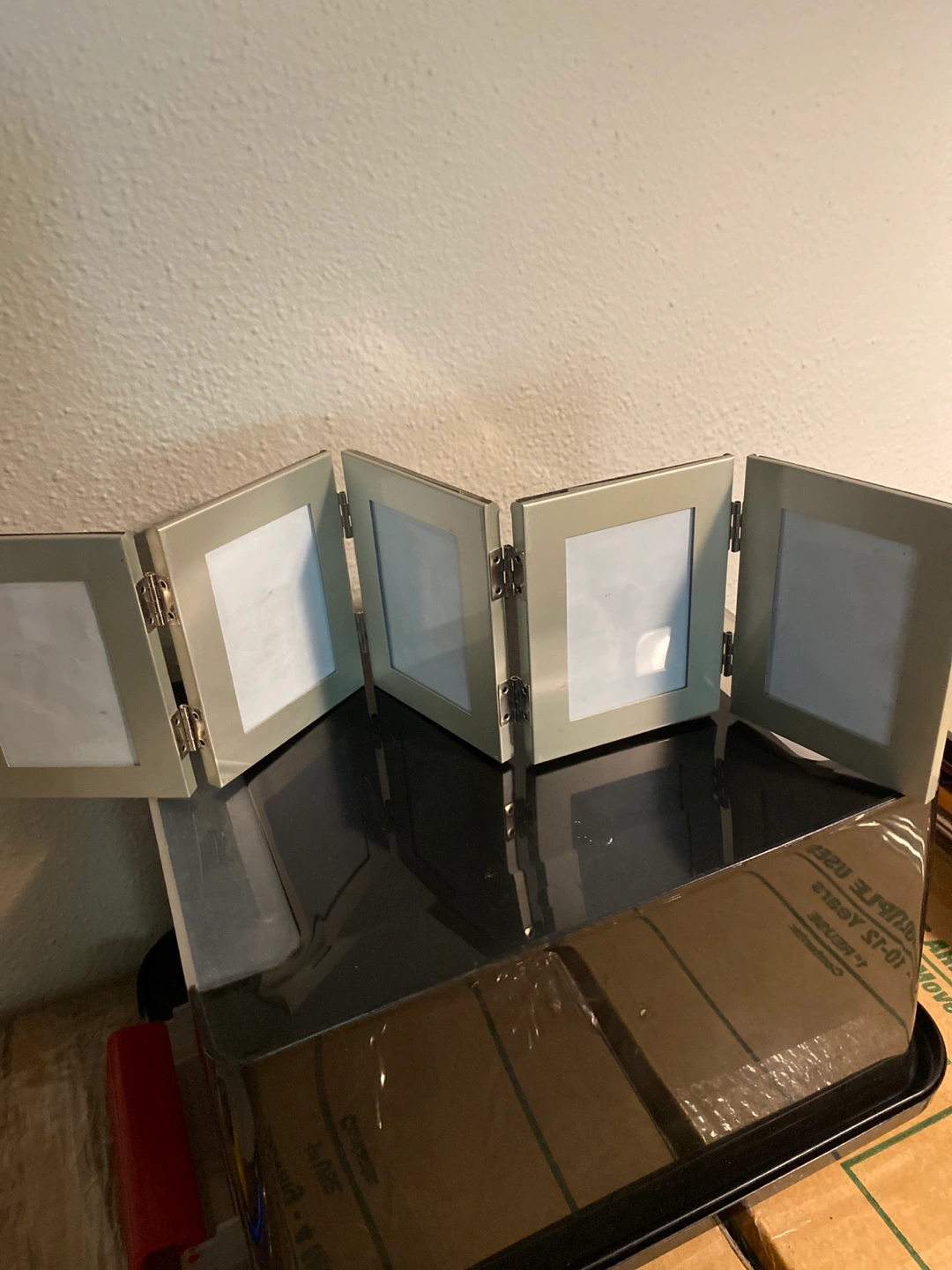 404Selling a folding photo frame! It's a unique way to display multiple pictures at once. Each frame is 3 1/2” x 4 1/2” total of 5 frames It's in good condition and ready to find a new home Pick up only Moving Sale