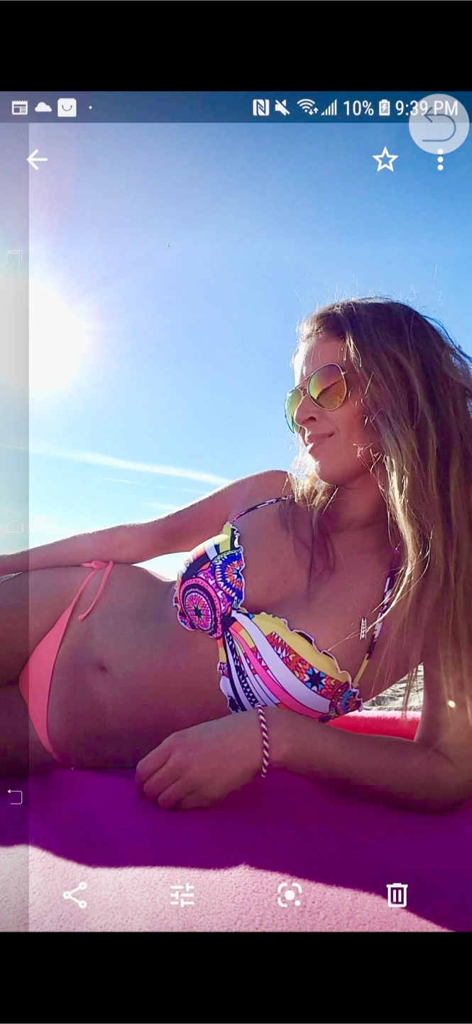 Very nice colors bikini top from Italy brand Tezenis. Fit size S-M. Got a New pink bottom for extra 7$ velour pink color super cute on the back what would go nicely with it.