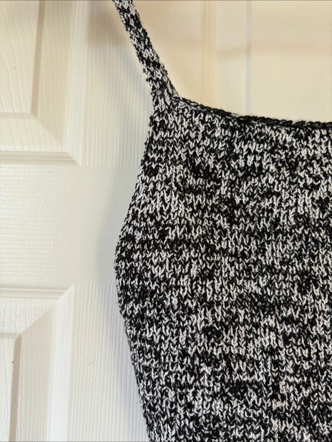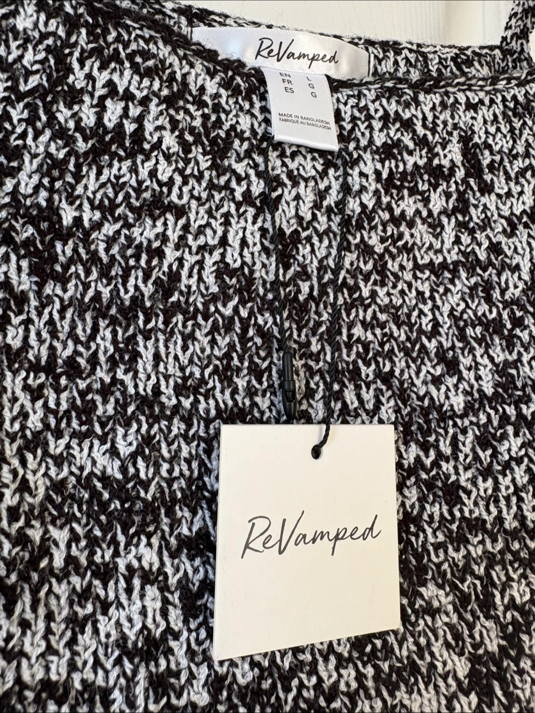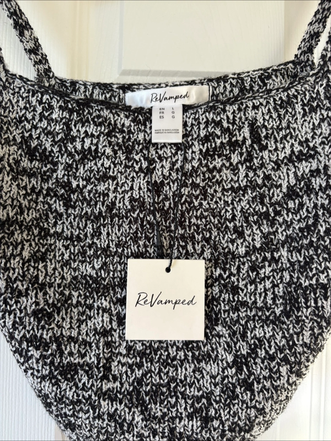 Selling a cute ReVamped knit crop top. It's a size large and features a black and white knit pattern. Perfect for layering or wearing on its own!