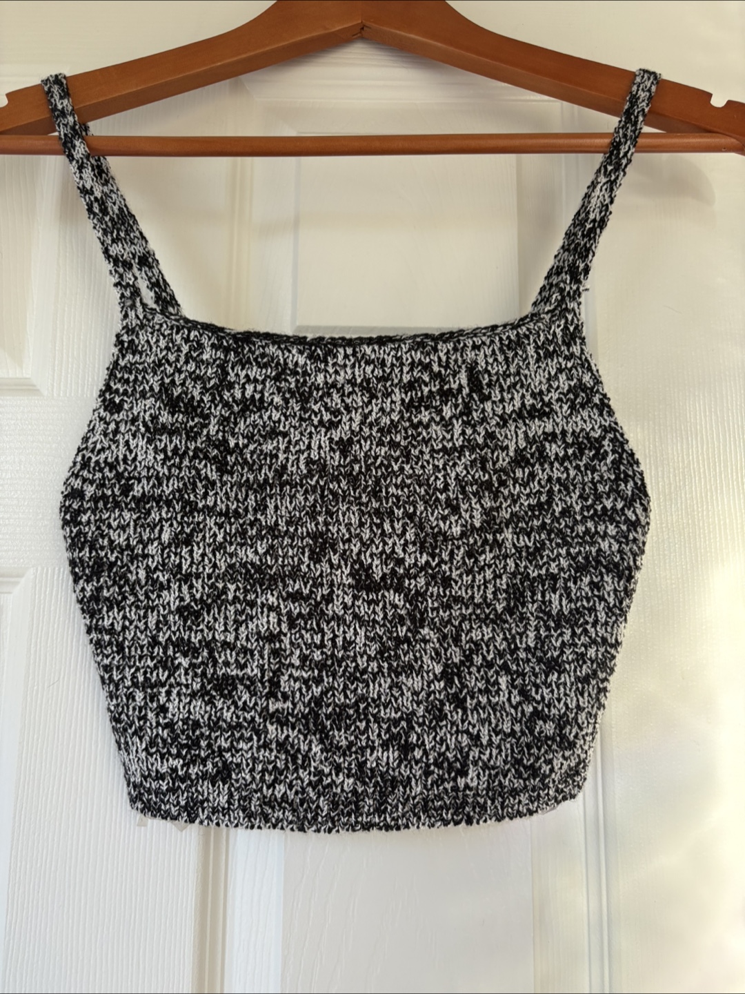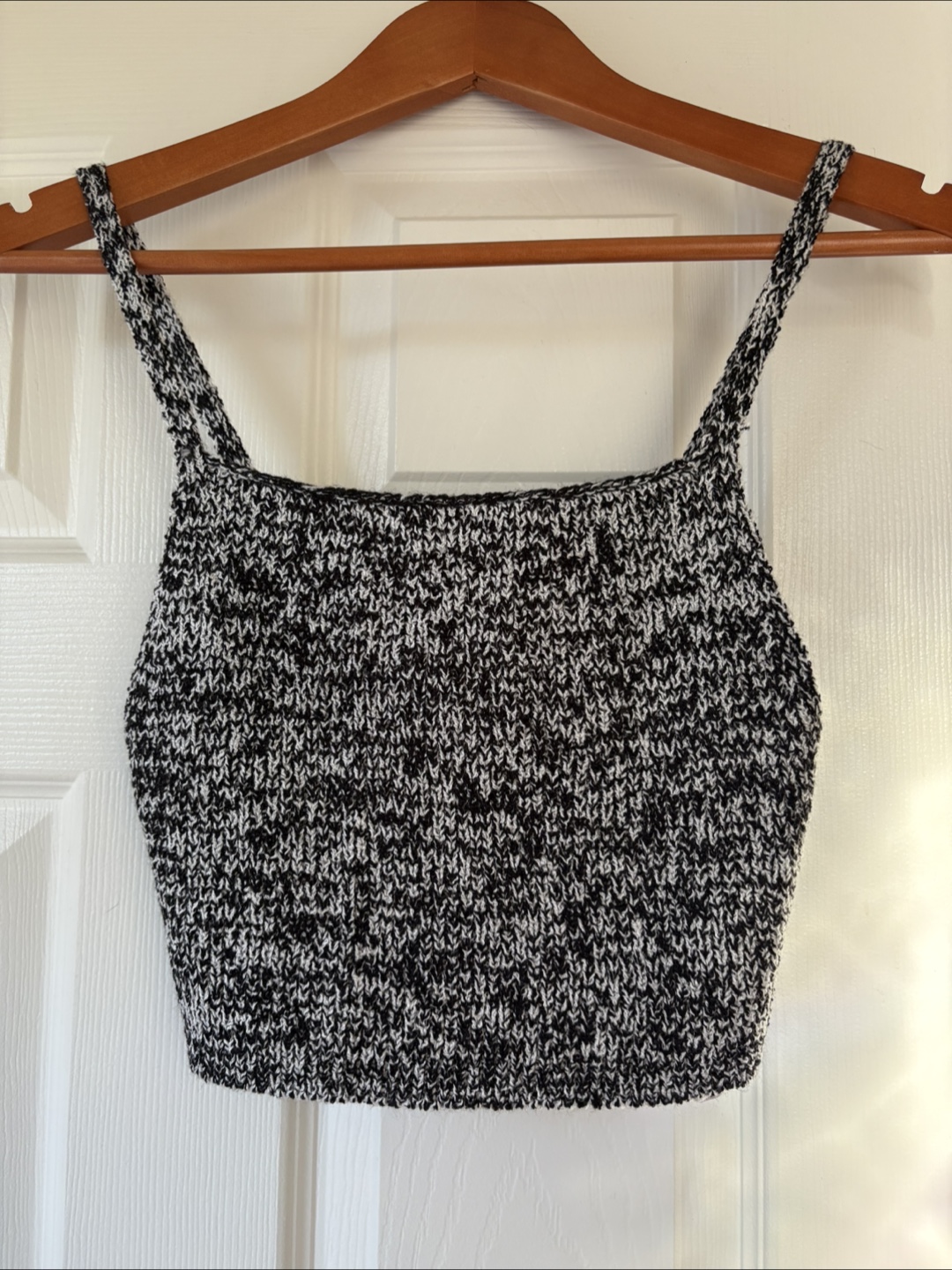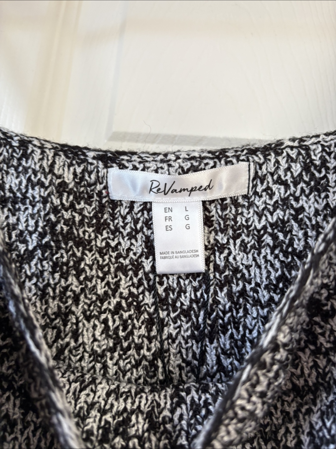 Selling a cute ReVamped knit crop top. It's a size large and features a black and white knit pattern. Perfect for layering or wearing on its own!