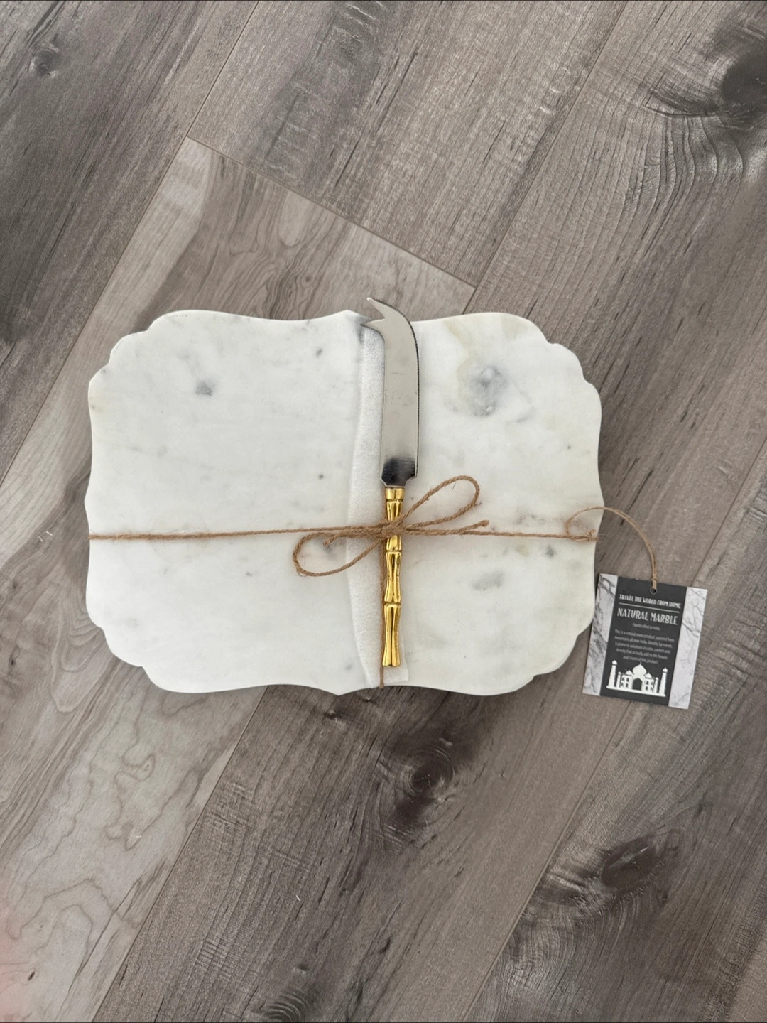 Selling a beautiful natural marble cheese board, complete with a cheese knife! It's in great condition and ready to be the centrepiece of your next gathering. The marble has a lovely, natural pattern. Perfect for serving cheese, appetizers, or desserts.