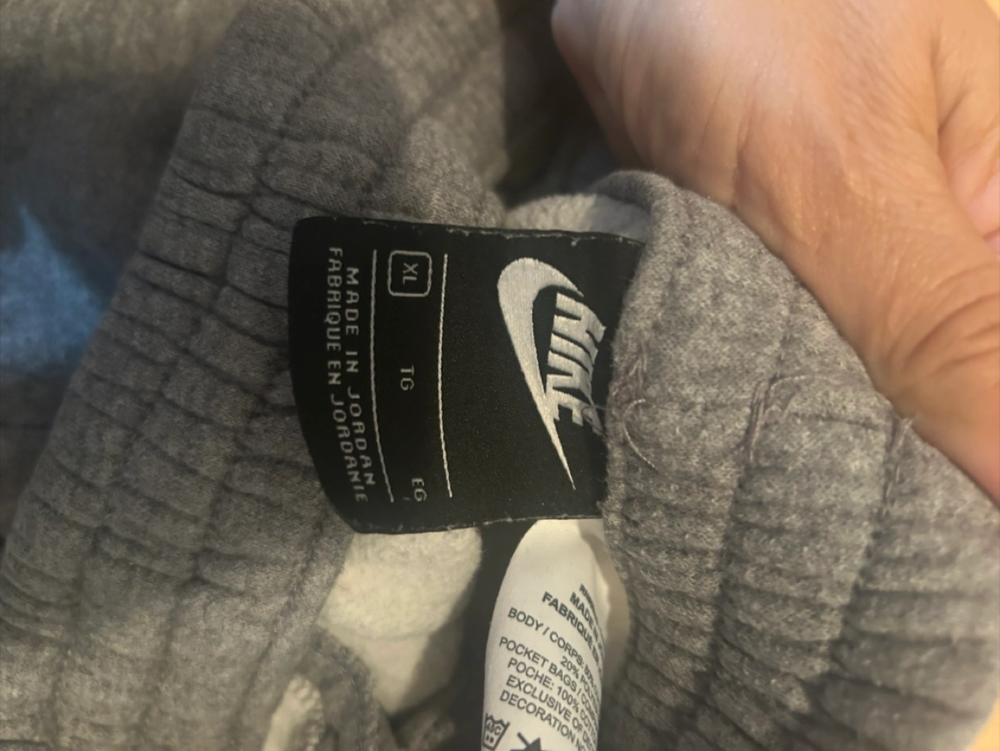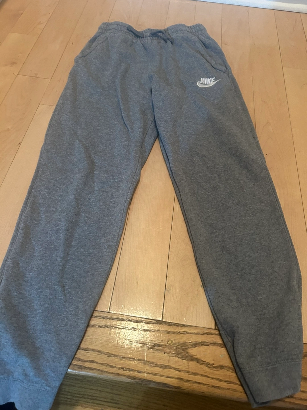 Selling a pair of Nike grey sweatpants in excellent condition. They are a size kids XL and made with a comfortable material, perfect for lounging or working out!
