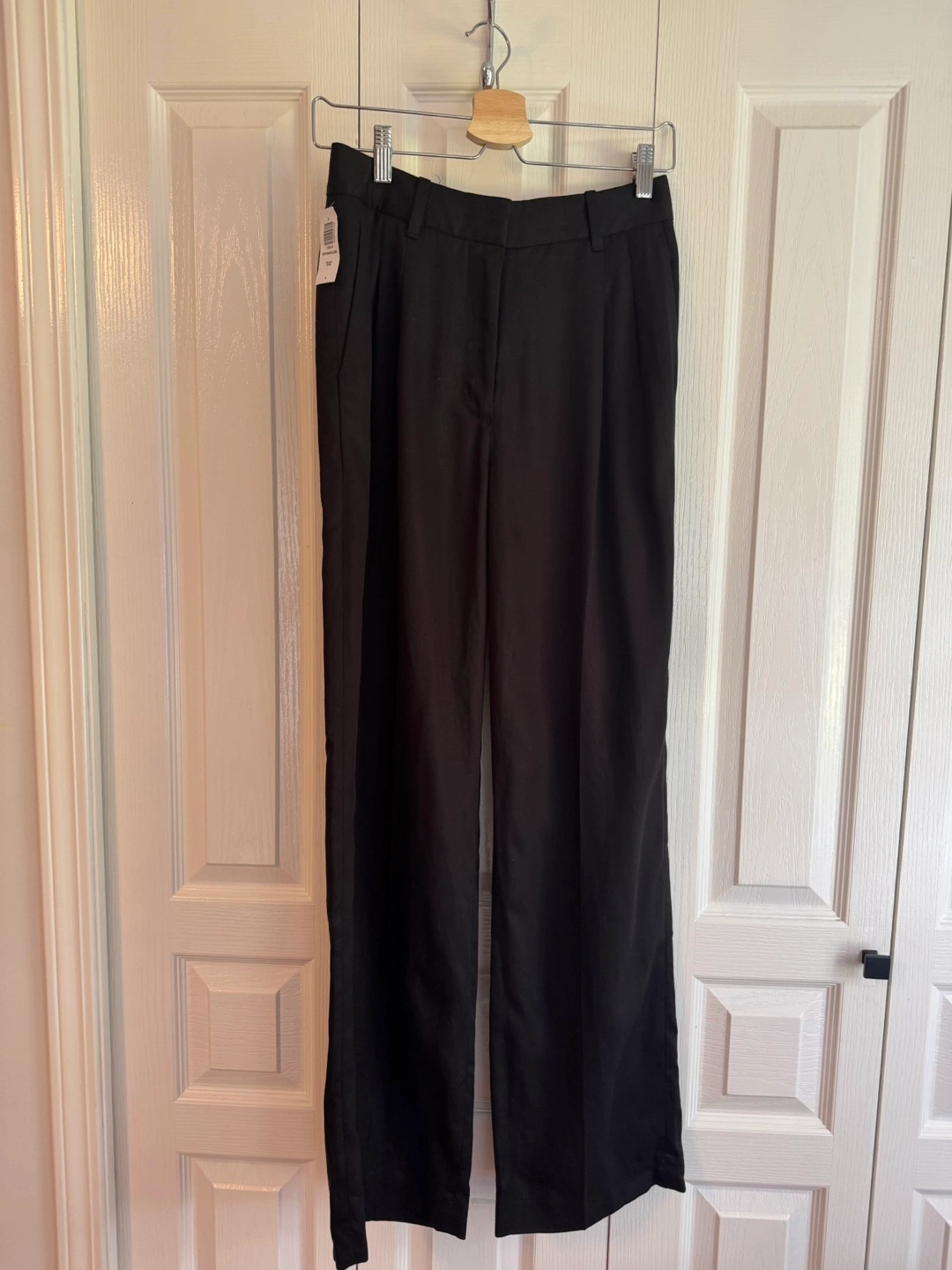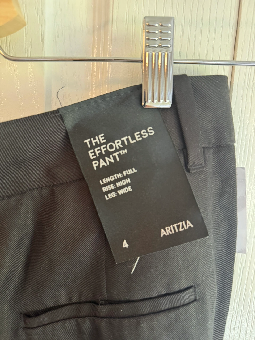 Selling a pair of Aritzia's The Effortless Pants in black. They are brand new with tag. Full length, high rise, and wide leg. A classic and versatile style!