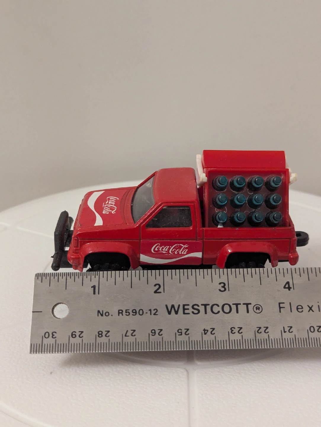 Selling a vintage 1987 Coca Cola REMCO toy truck! It's a fun collectible and in good condition for its age. The truck has Coca-Cola logos on the side and back. The tires are marked with REMCO. Both cases are present but one is missing the bottles. Made in 1987.