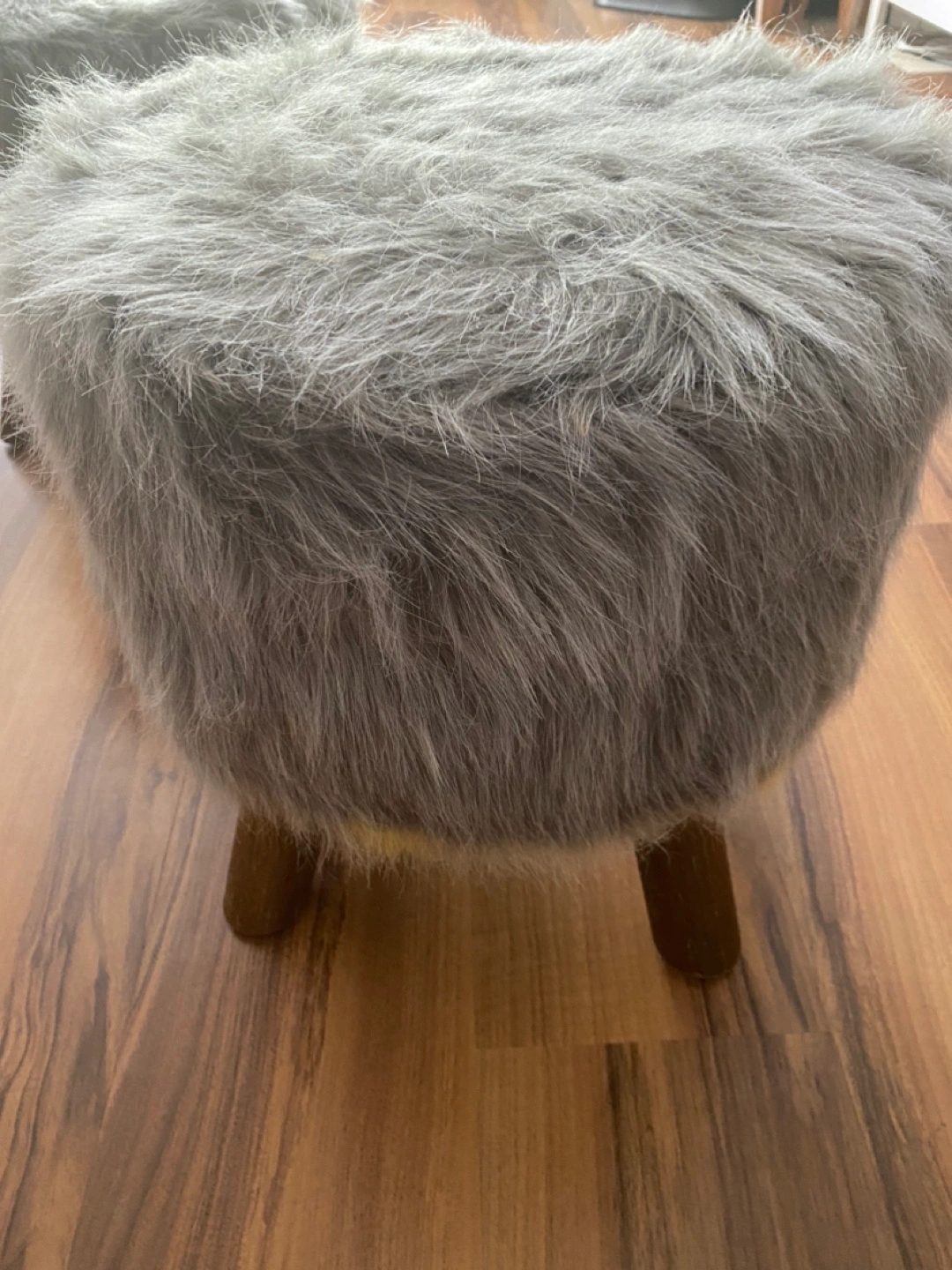 Selling 2 cute grey faux fur stools! It's in great condition and would be a fun addition to any room. The legs are sturdy and the faux fur is soft and fluffy. It's perfect as a footrest or extra seating