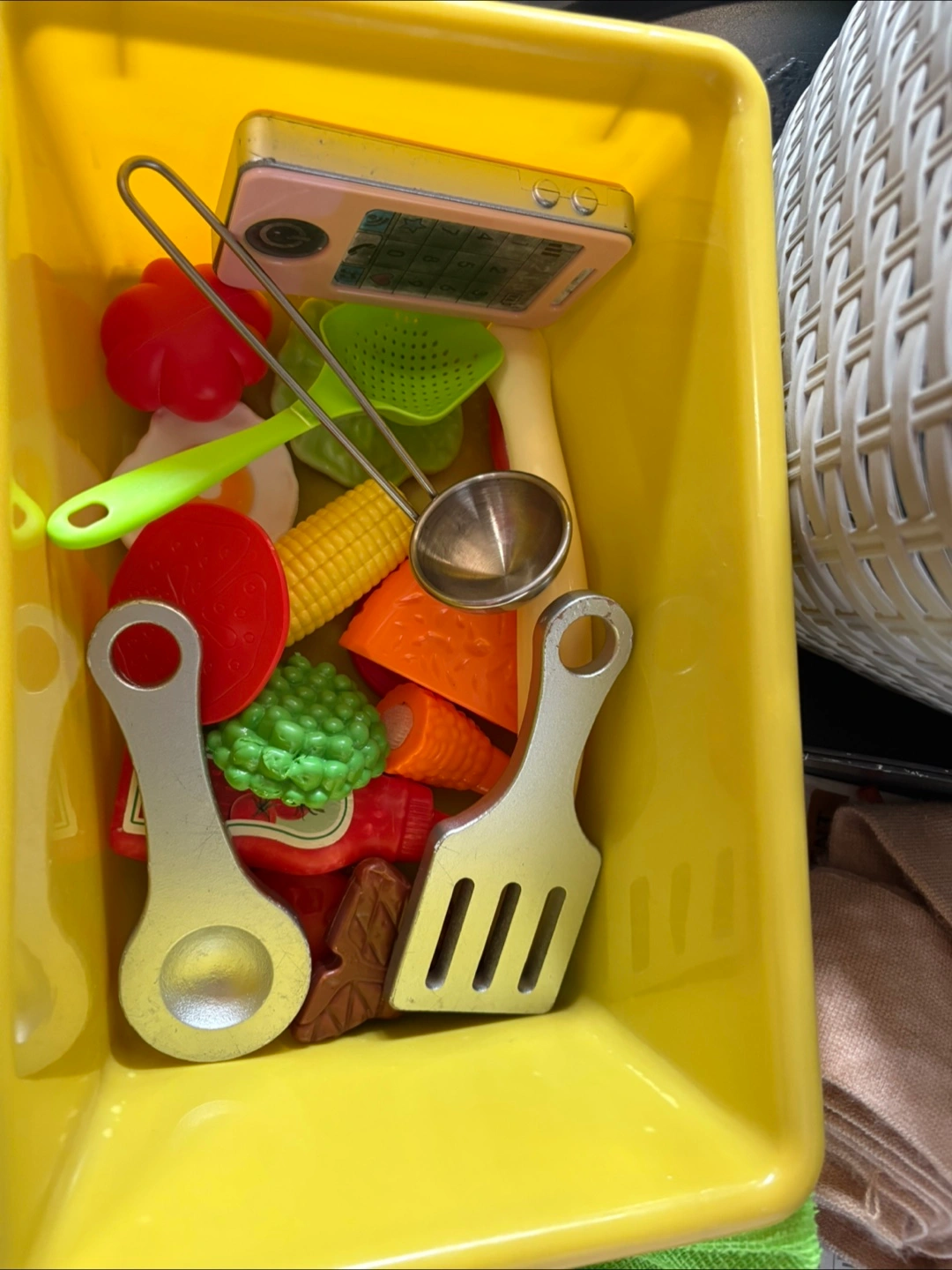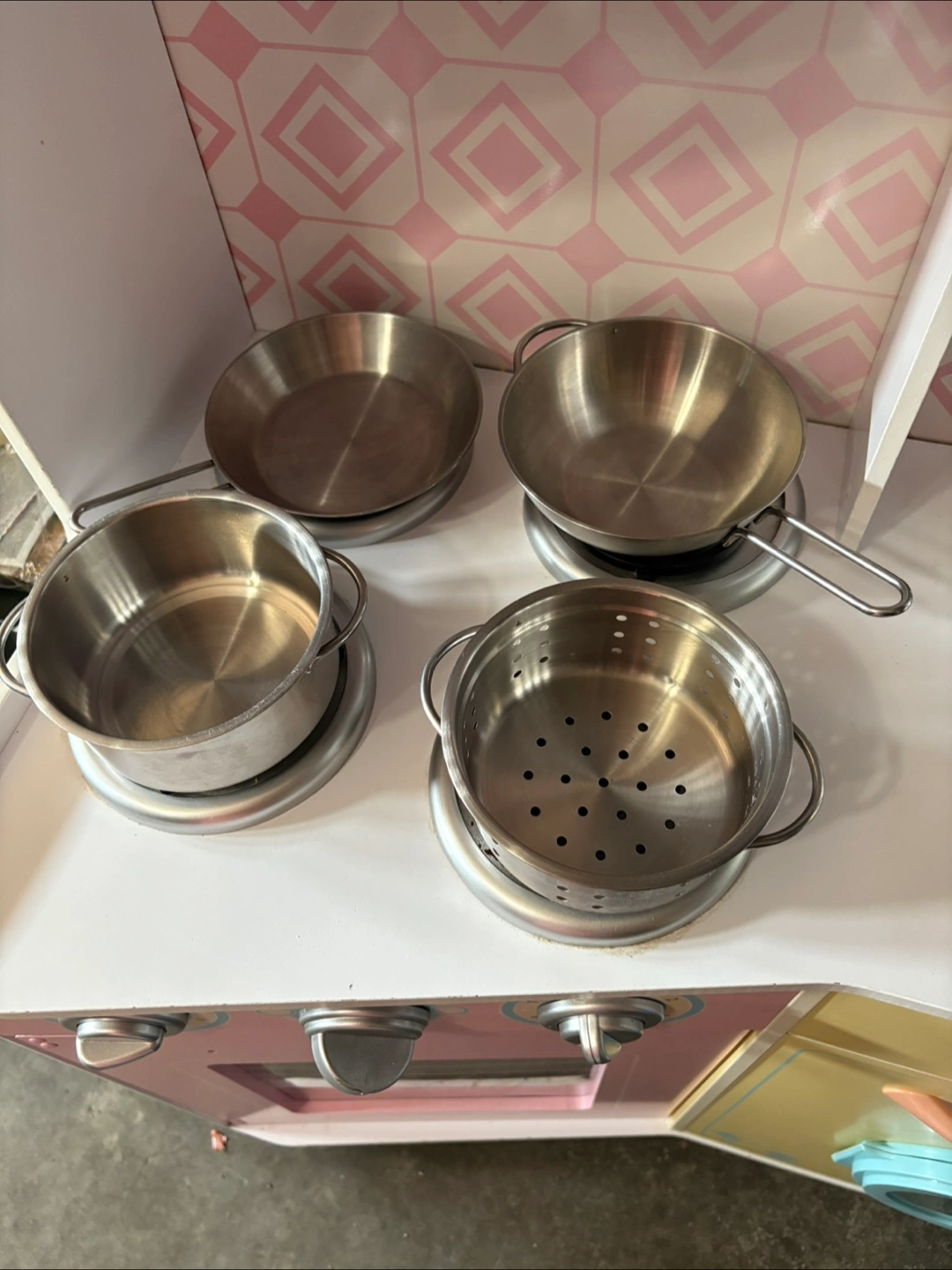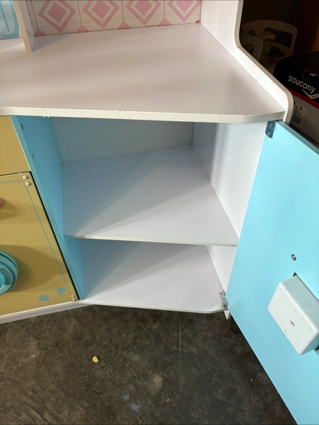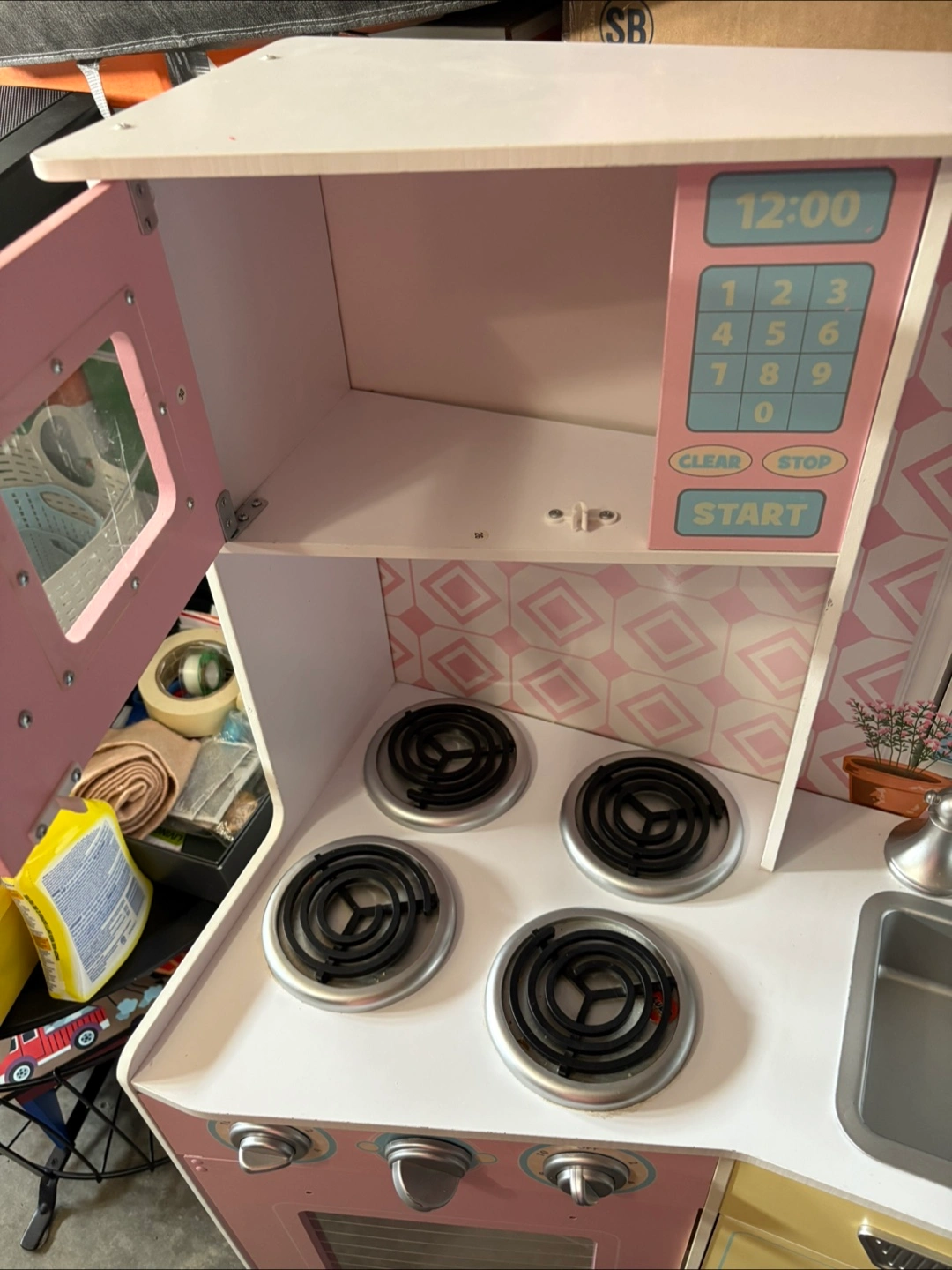 76Refurbished toy play kitchen in good condition - perfect for hours of imaginative play! Includes a microwave, stovetop, oven, washing machine, and a fridge with an ice dispenser. Comes with mini dishes, utensils and an assortment of plastic play food to get started right away! Please note: the faucet and two handles just need to be attached with 1-2 screws (I didn’t get a chance to do it before listing). Easy fix! Cleaned, refreshed and ready for a new home!