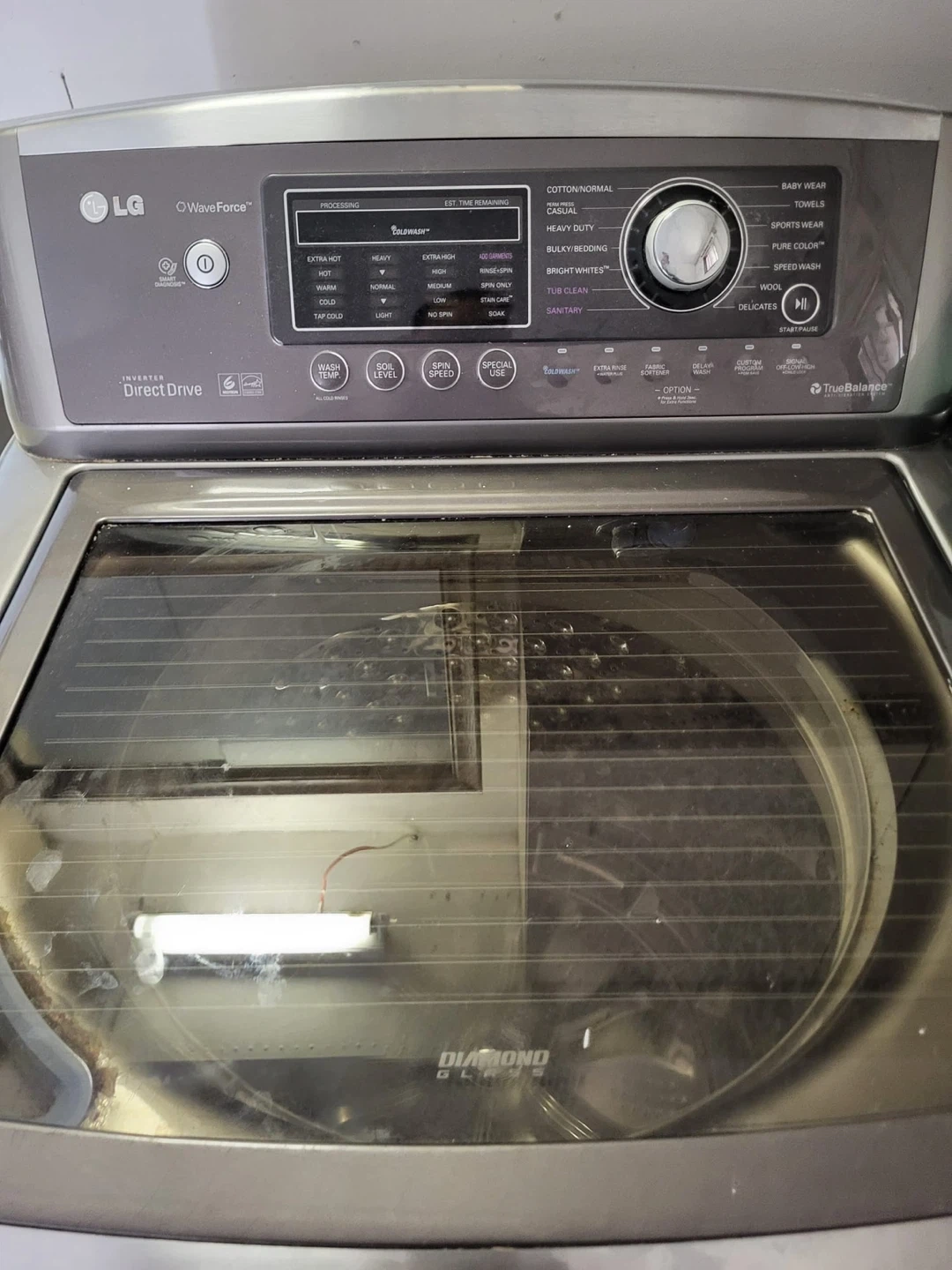 Selling a used LG WaveForce top load washing machine. It's in good working condition and ready for a new home. Perfect for families or anyone needing a reliable washer!