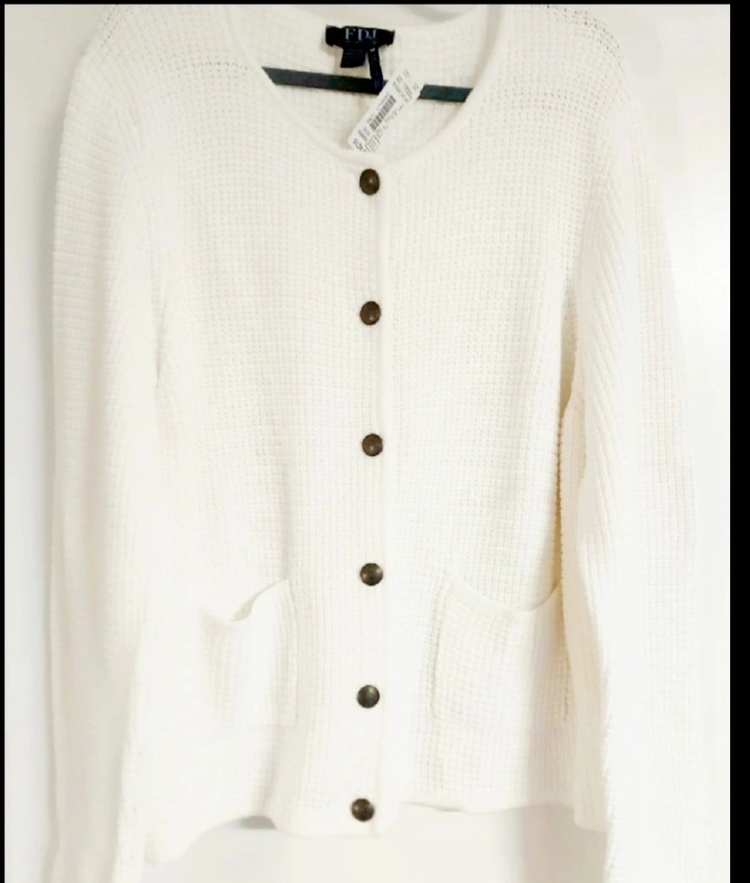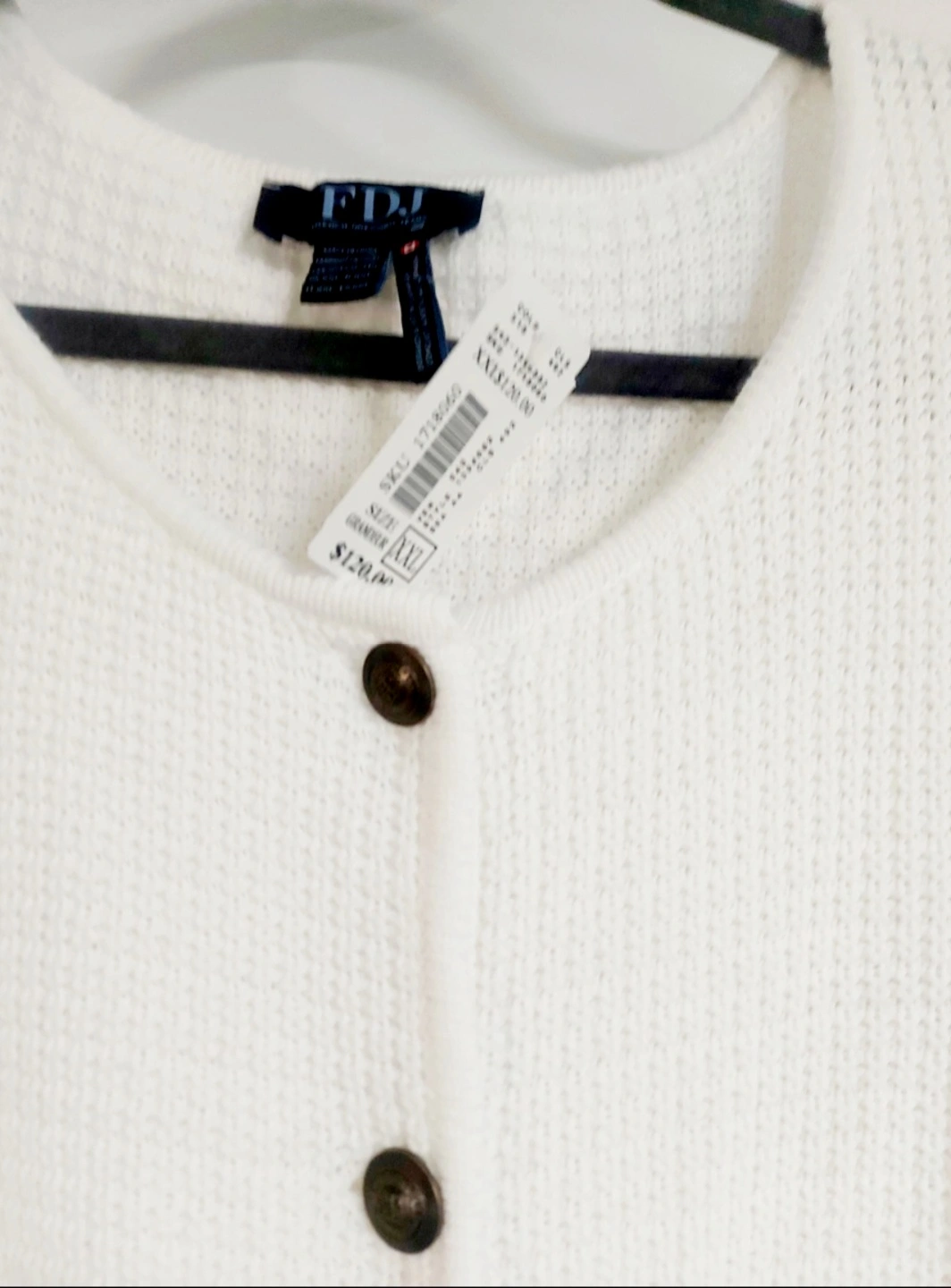 This is a brand new FDJ French Dressing cardigan in size XXL. It's a lovely white colour and features a classic button-down design. Originally bought for $120.00!