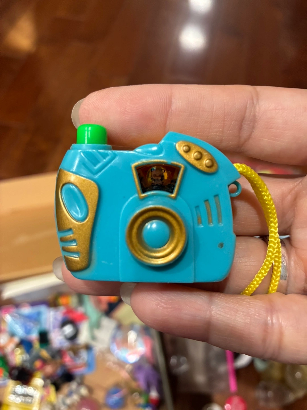 Selling a cute little blue/yellow toy camera that has view-master-like pictures when the shutter button is pressed!