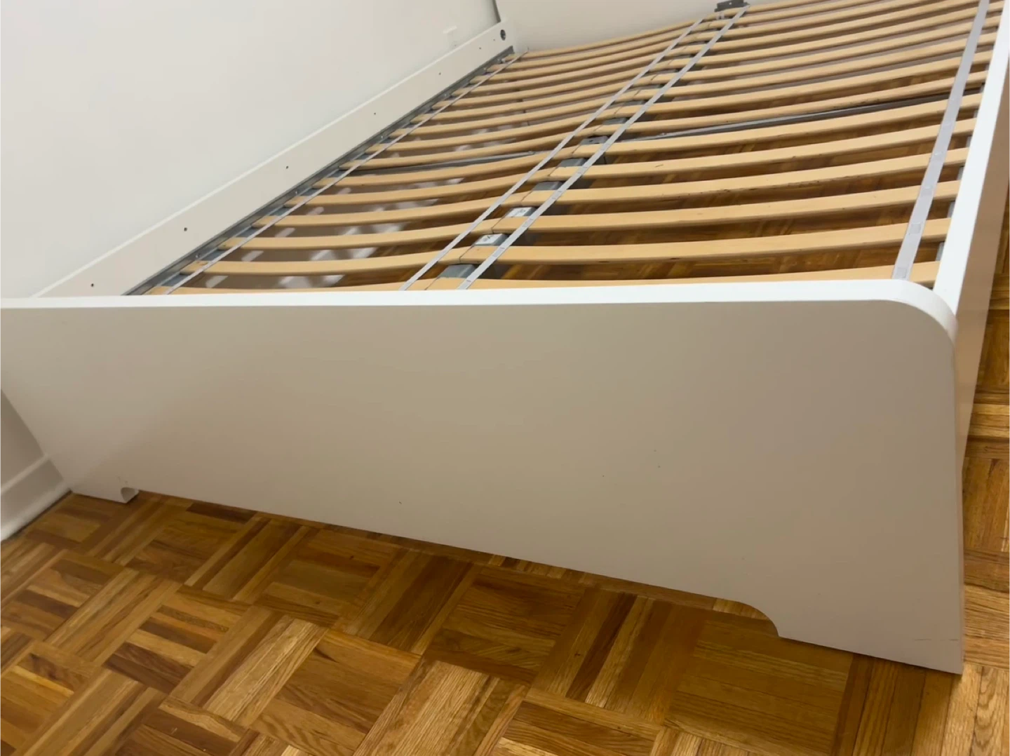 Selling a white IKEA Malm bed frame. It's in great shape and ready for a new home! The slatted bed base is included as well.