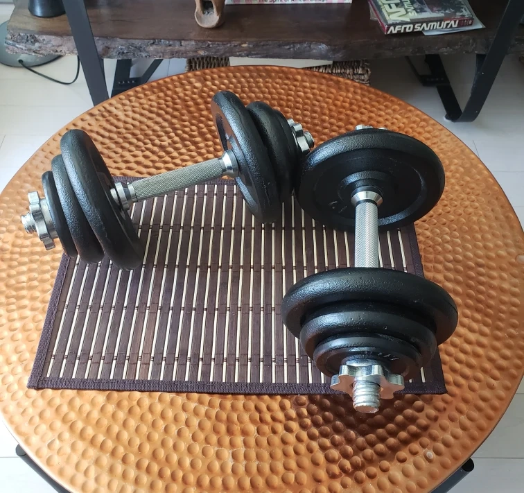 Get ready to pump some iron with this pair of adjustable dumbbells, each weighing 21 lbs!