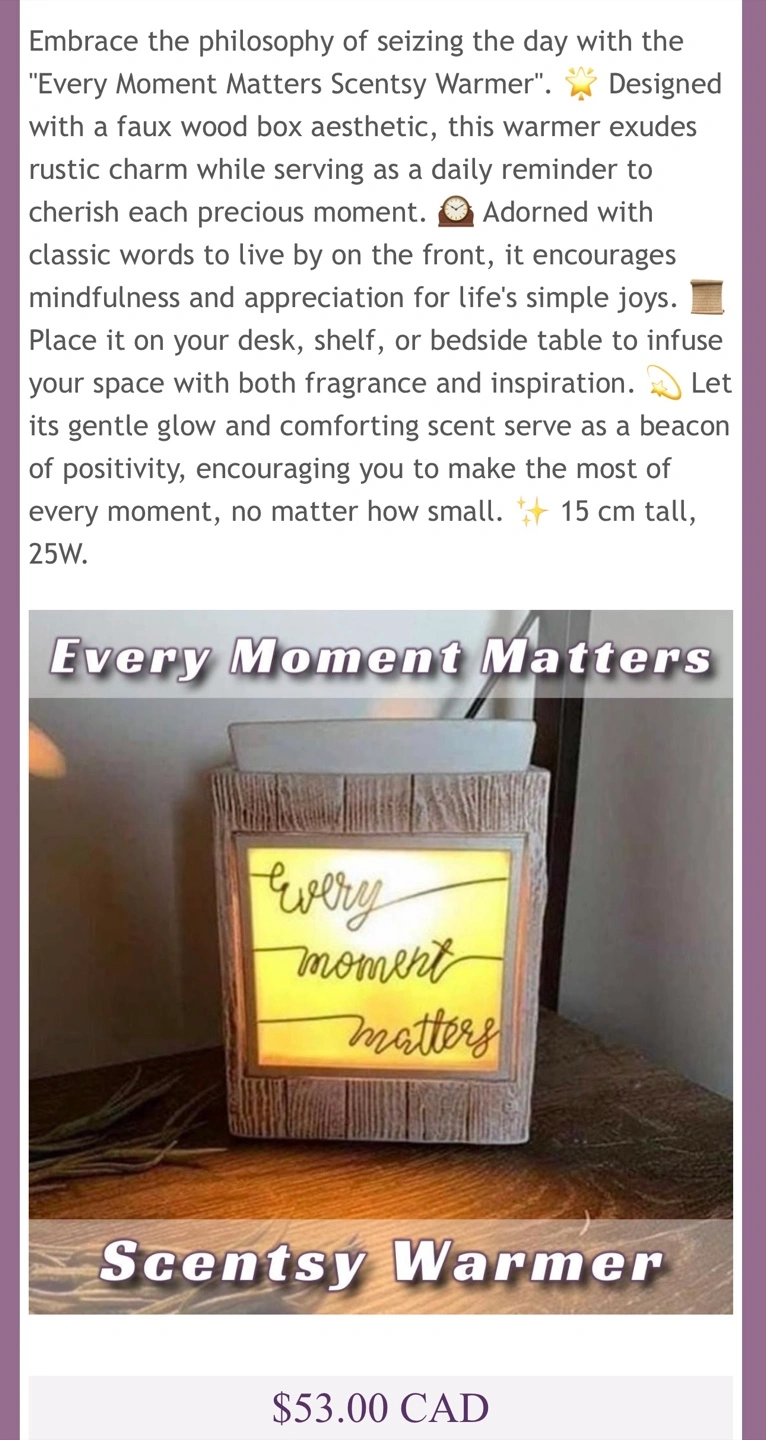 Buy & SellScentsy Warmer - Every Moment MattersScentsy Warmer - Every Moment Matters$30New in box! Sells for $53 plus tax & shipping Asking $30 firm. Sf home PICK UP OSHAWA - Park & AnnapolisConditionNewWHERE TO MEETOshawa CentreView MapSELLERTanyaMcLaughlin261 review0 chats·0 favorites·4 views
