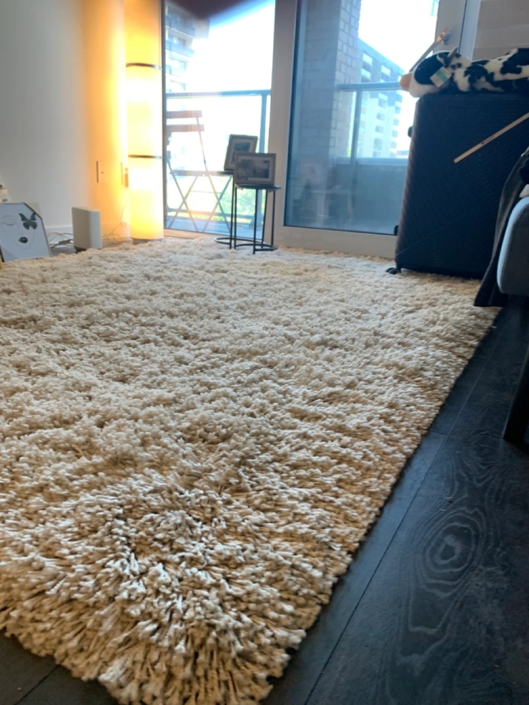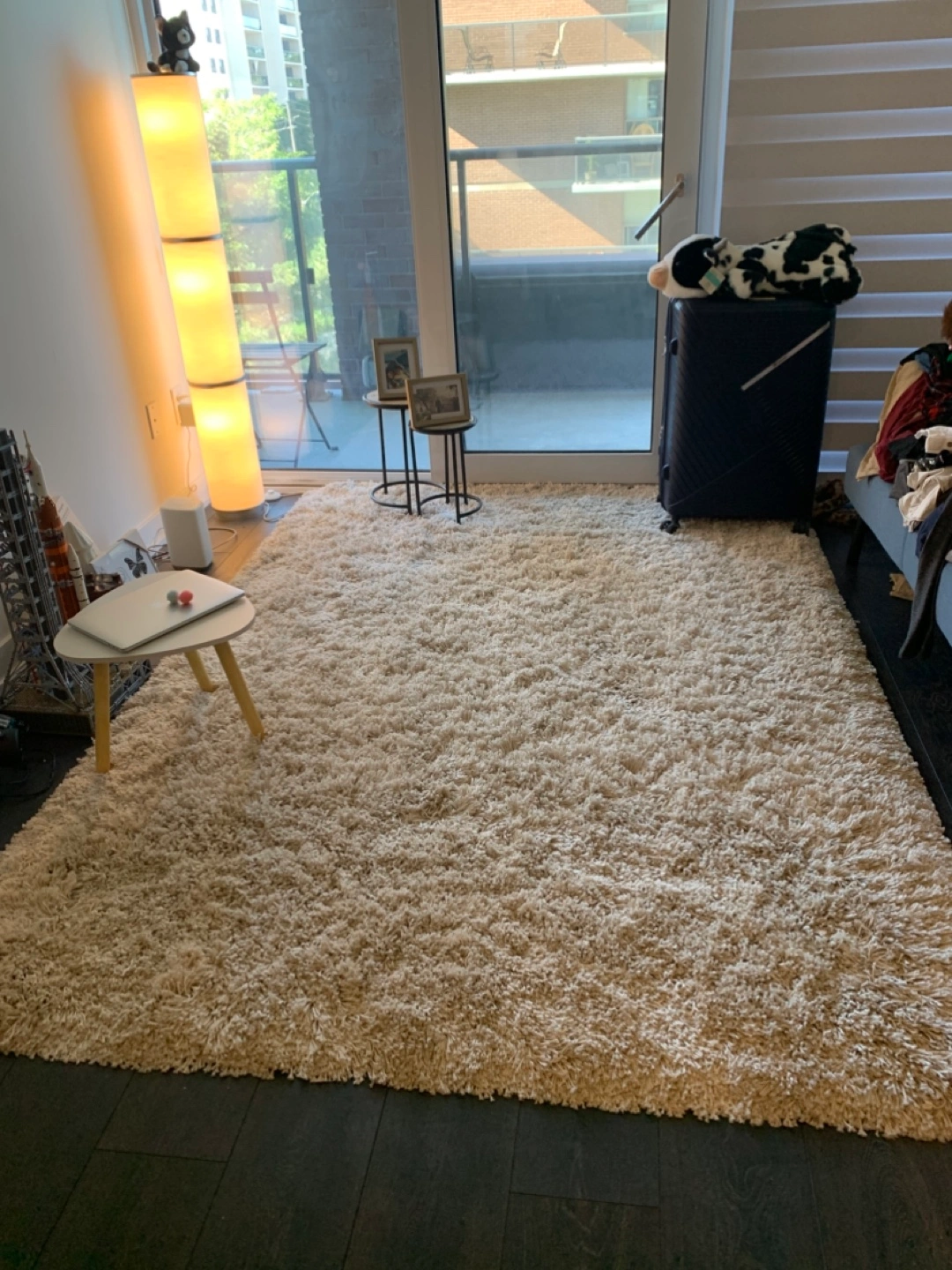 Selling a cozy beige shag rug that would look great in any living space. It's in good condition and ready to add some warmth to your home. Perfect for adding texture and comfort to your floors!