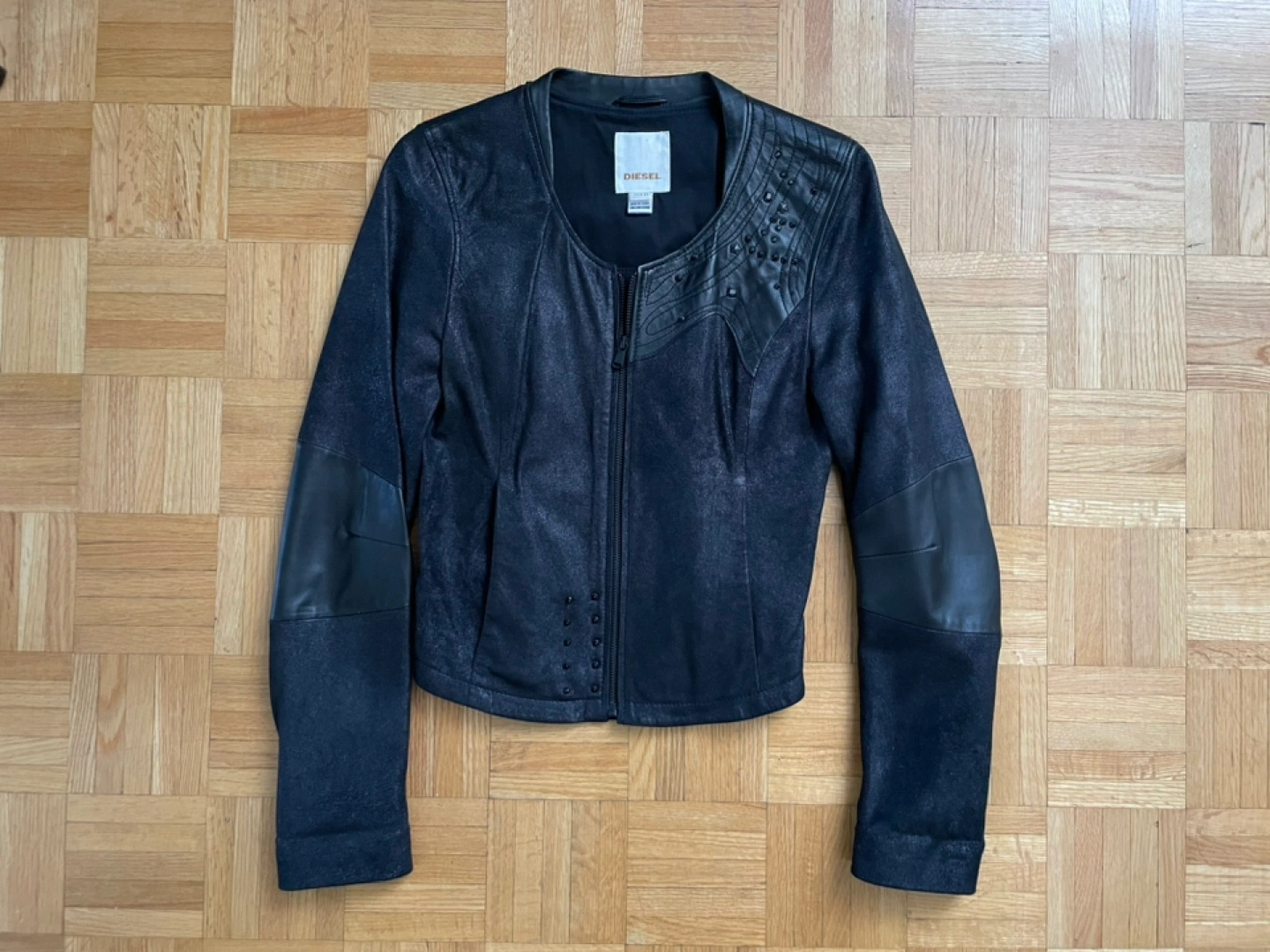 Diesel black jacket in great condition! The jacket is made of leather and has a unique design. It would be a great addition to your wardrobe