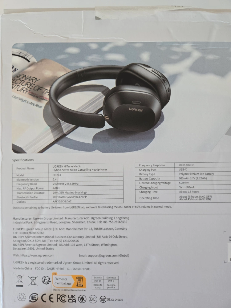 Selling a pair of Ugreen HiTune Max5c Hybrid Active Noise-Cancelling Headphones. They're in fantastic condition and come with the original box! Key features include:
