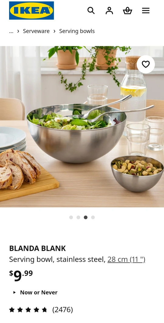 2. IKEA Stainless steel Bowl: 11"(28cm)
