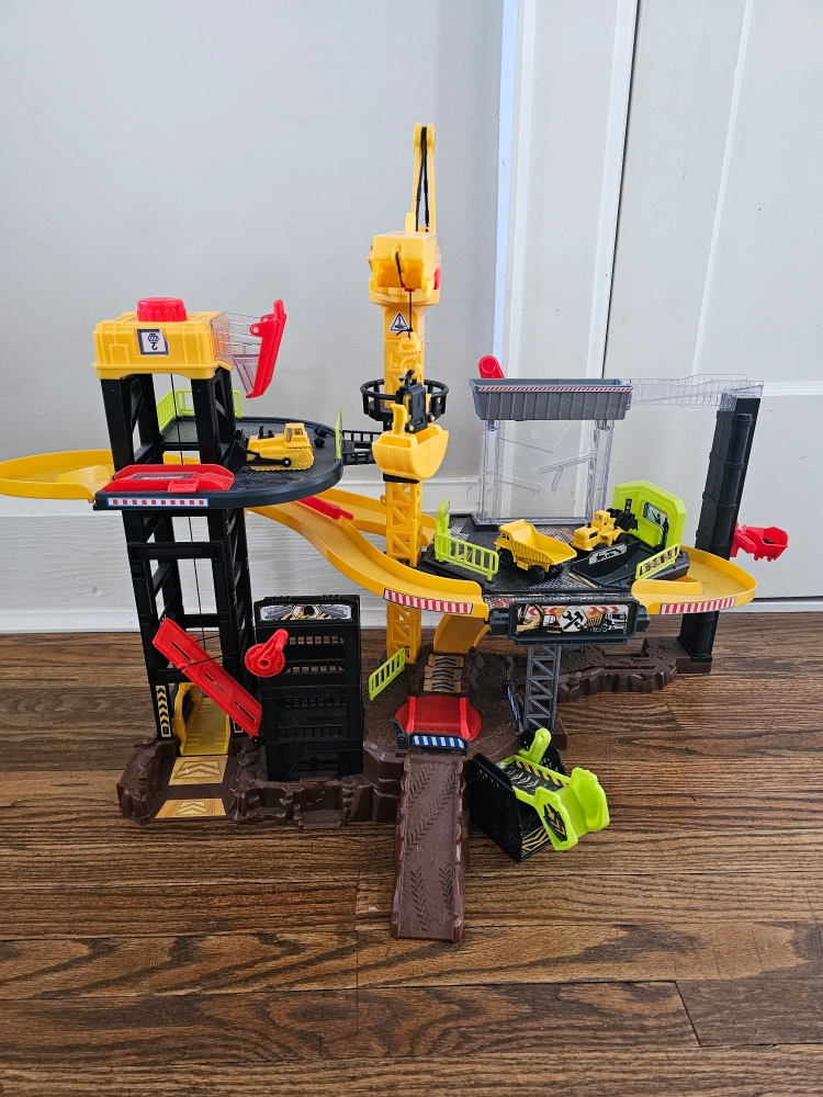 A fun construction zone playset for kids who love trucks and building! It includes a crane, ramps, and several construction vehicles for hours of imaginative play