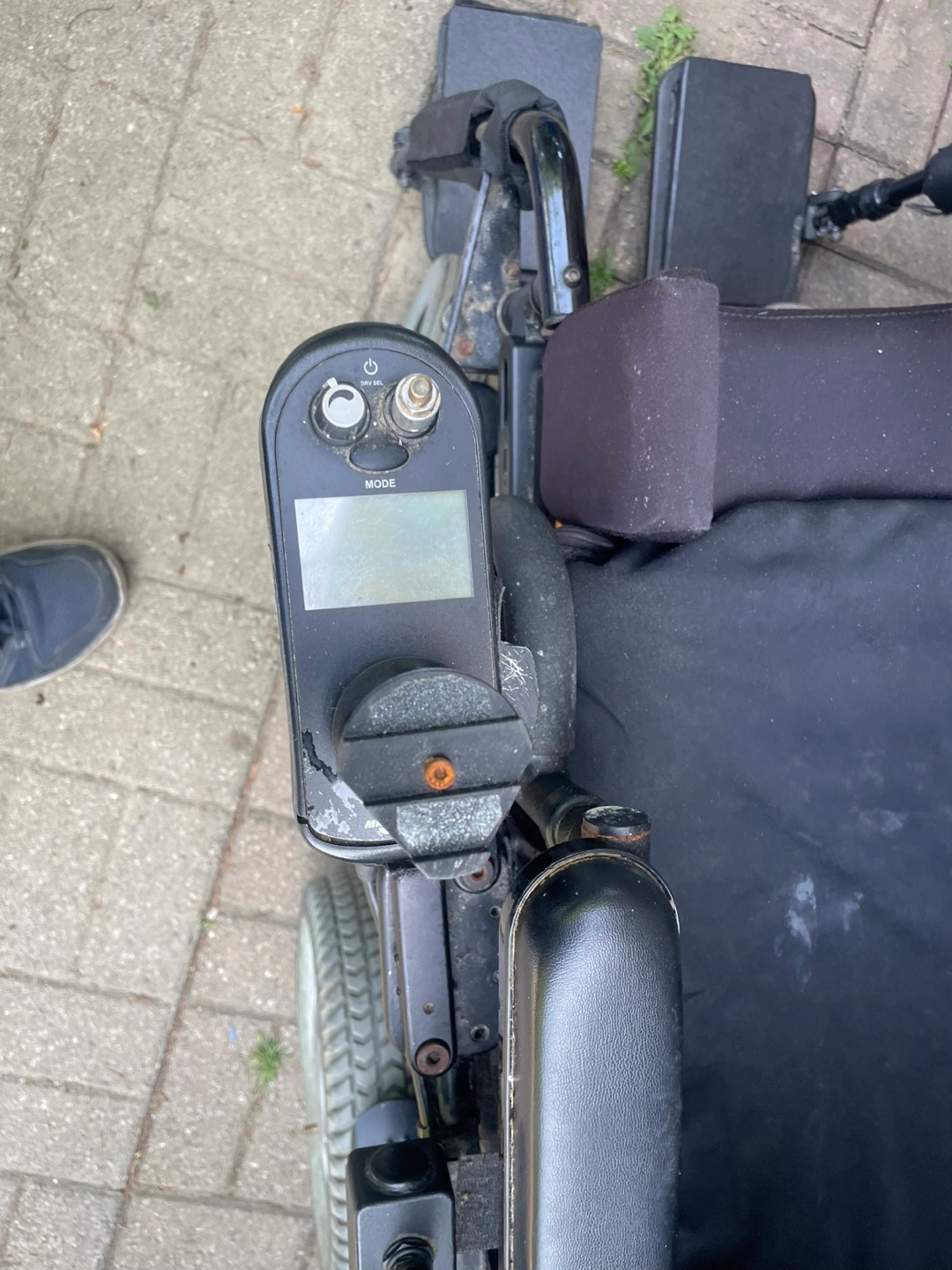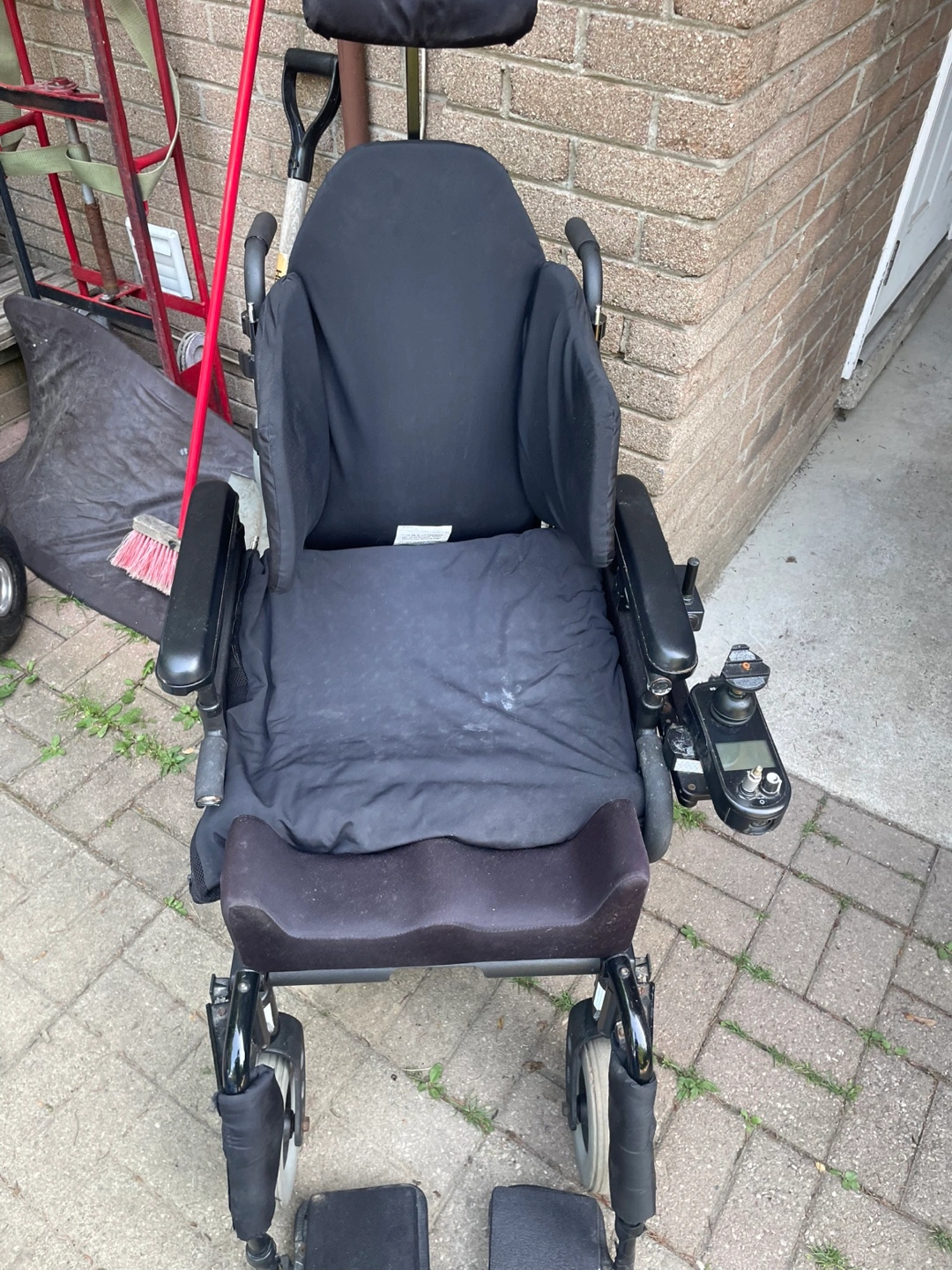mobility scooter / wheelchair (As it’s) ,not working currently delivery available if possible only It’s mobility wheelchair/ battery power mobility scooter dead batteries- As it’s the condition Not moving - doesn’t turn on It Comes with power code/ charger cable Cash and pickup Location- brimley and Lawrence Thank you