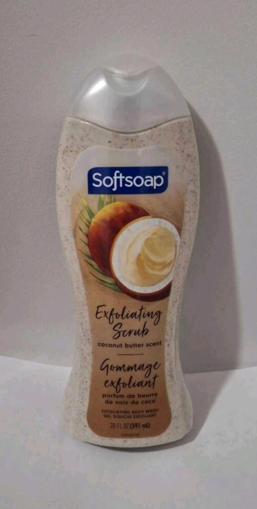 Softsoap Exfoliating Scrub with a coconut butter scent! It's a body wash and gel douche exfoliant. The bottle contains 20 fl oz (591 mL)
