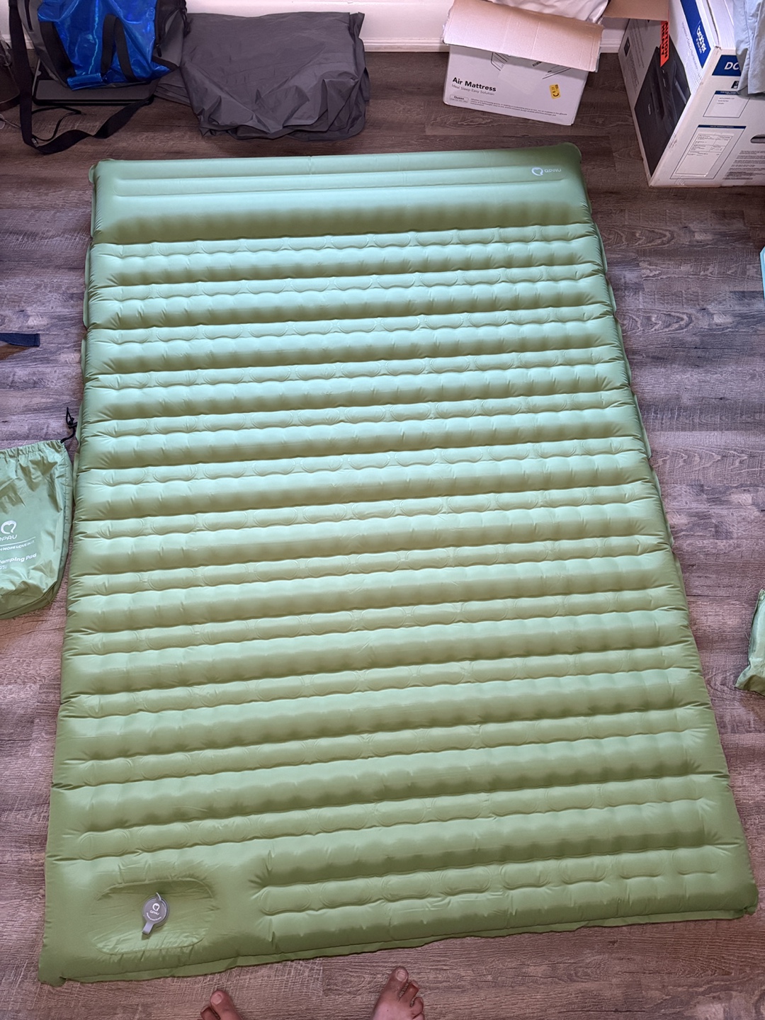 Selling a brand new inflatable camping pad! This pad is lightweight and compact, making it perfect for any camping trip. It's designed to conquer any ground, so you can revel in the beauty of camping. It also features a quick foot-pump inflation system, equipped with a built-in air pump, and a patented I-beam framework for solid support