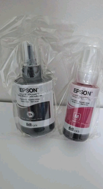 Selling Epson ink bottles in black and magenta. These are genuine Epson ink, perfect for your Epson printer! The bottles are still sealed in their original packaging.