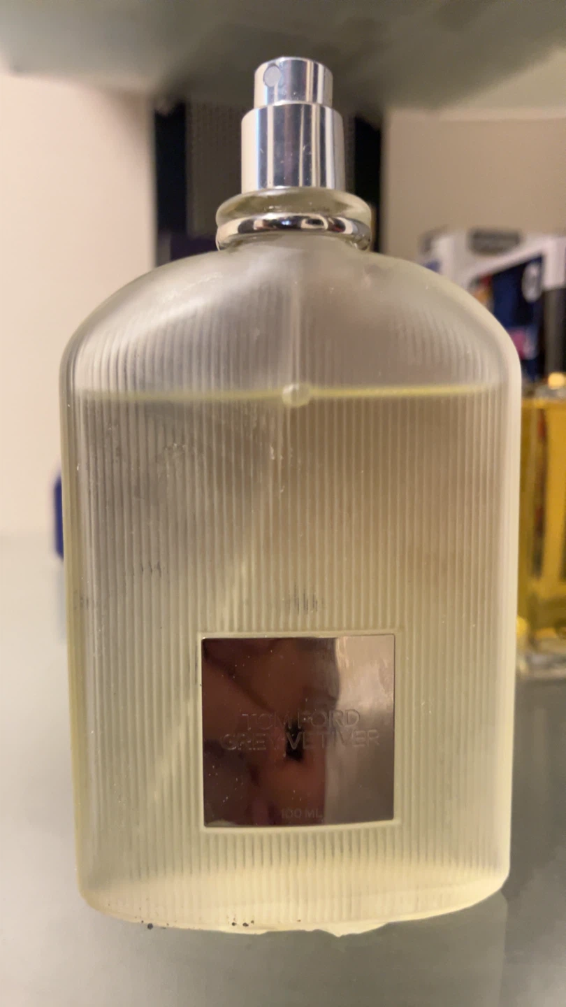This is Tom Ford Grey Vetiver Eau de Parfum for men. It's a 100ml bottle of fragrance. This scent is known for its clean, citrusy, and woody aroma.