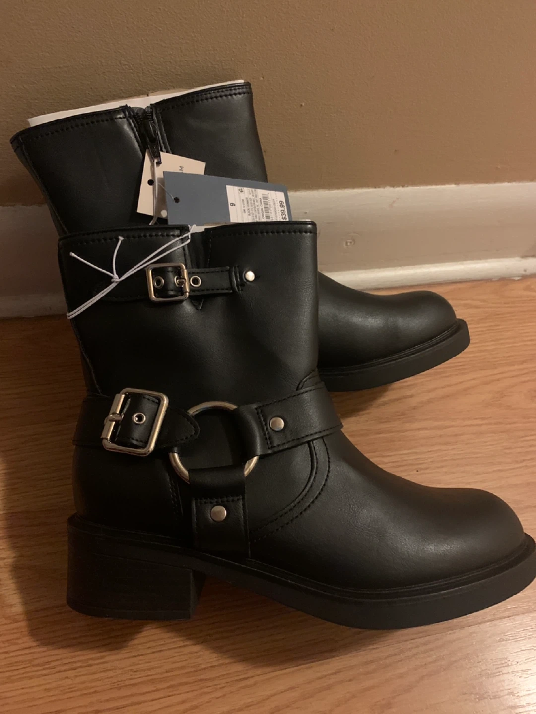 These are a new pair of Thread & Supply black boots in size 9! They have a memory foam insole for extra comfort. The boots feature a stylish buckle design.