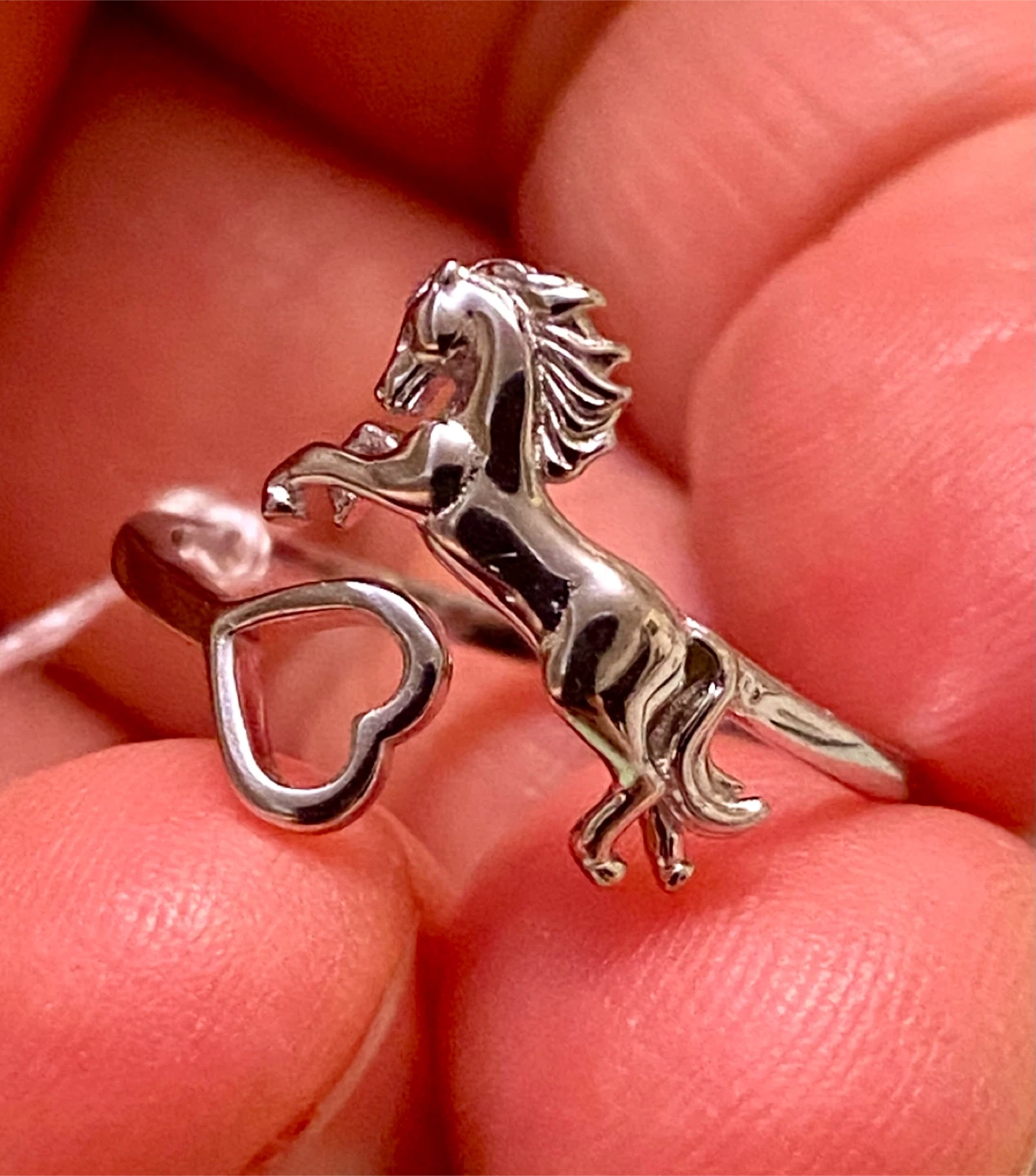Sterling Silver Horse and Heart Ring
