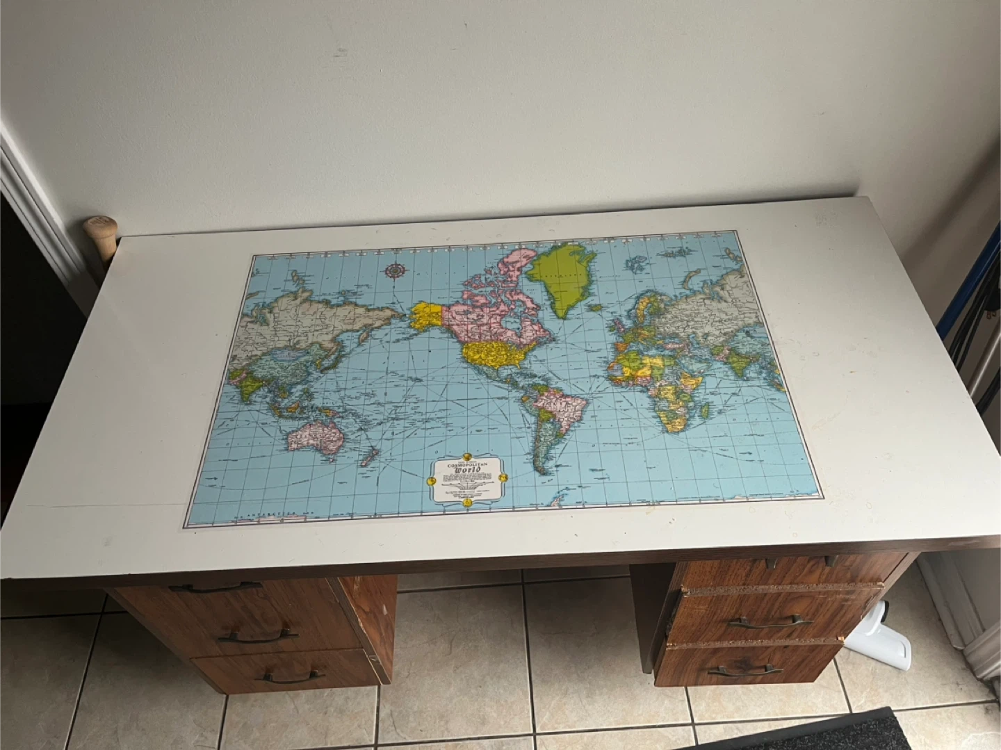 Desk with Cosmopolitan World Map Top