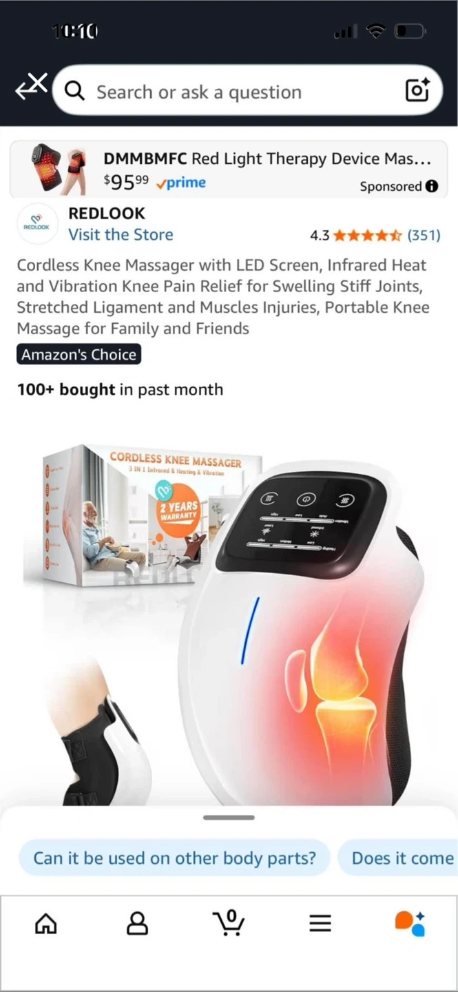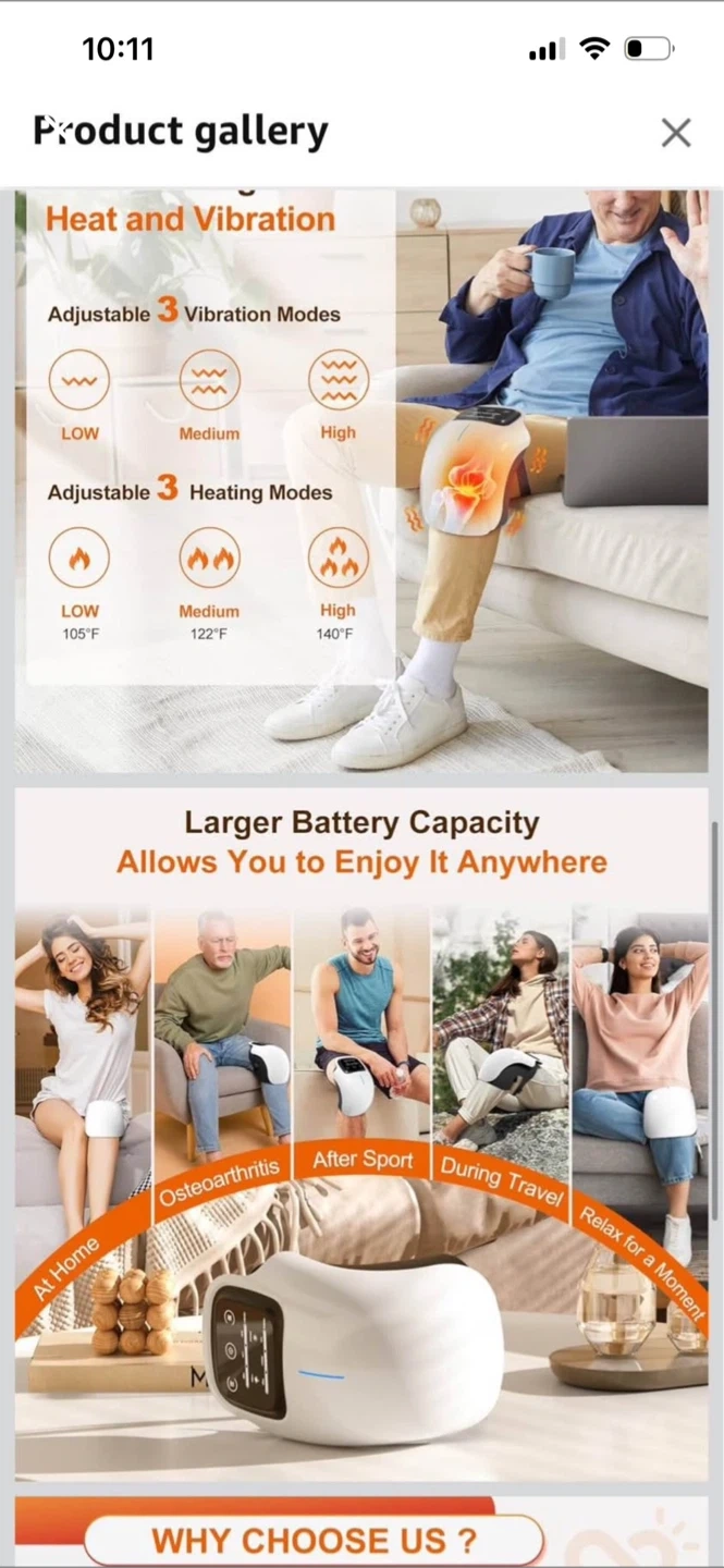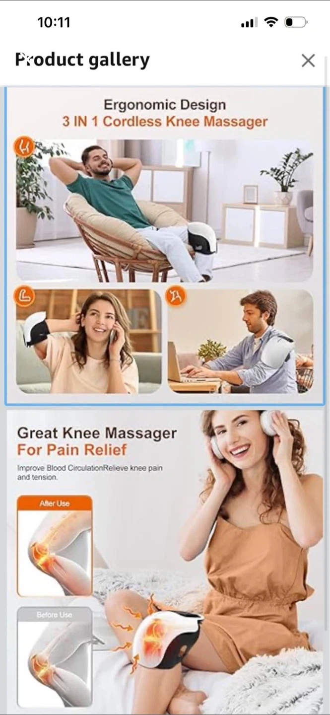 This 3-in-1 cordless knee massager offers adjustable heat and vibration modes. It features a 10-minute timer and a 3000 mAh battery for extended use. It's great for relief from knee pain and stiffness after sports or during travel.