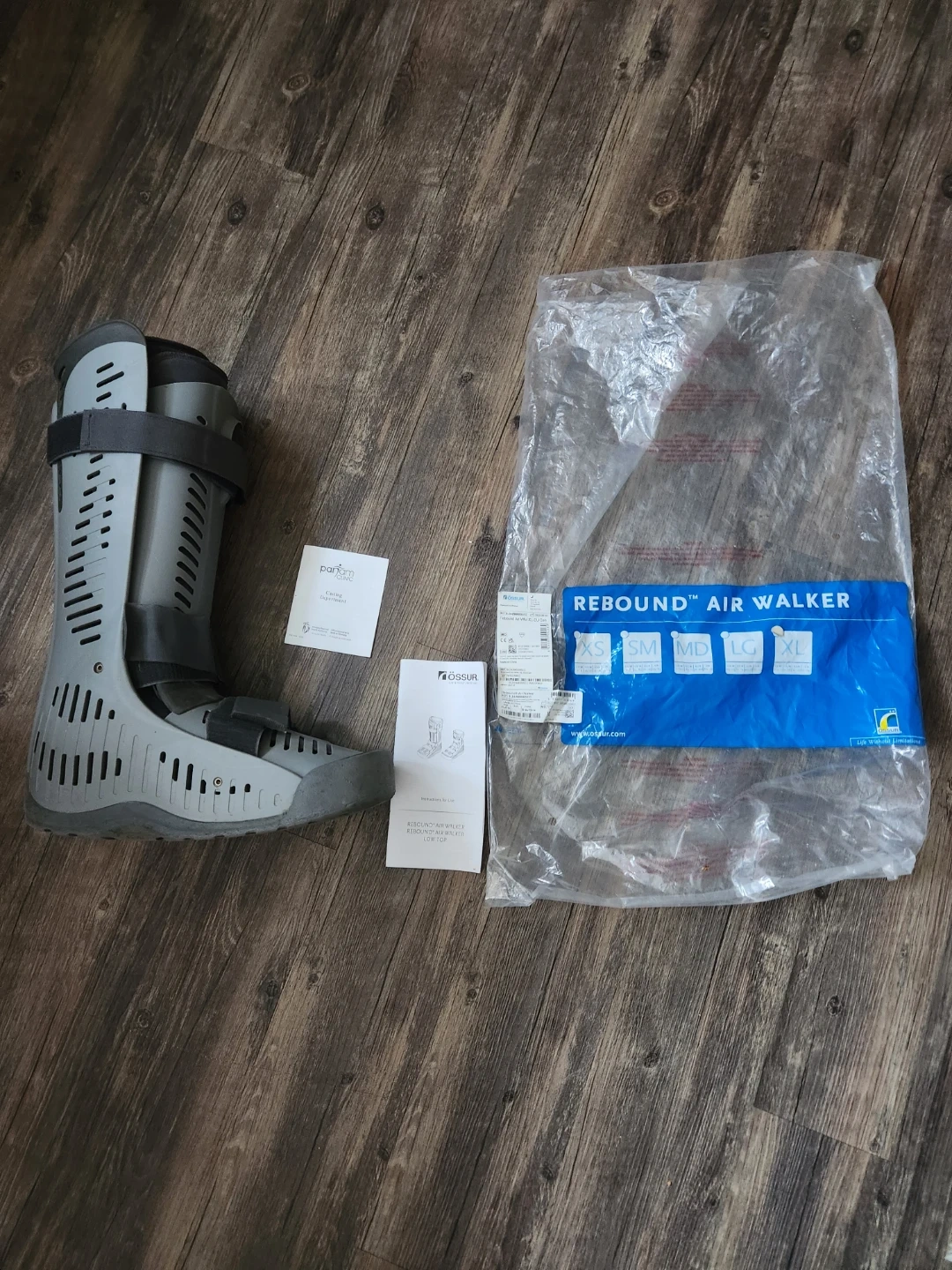 DonJoy Rebound Air Walker boot for ankle and foot injuries. It's a medical boot designed for support and immobilization. Comes with the boot and liners.
