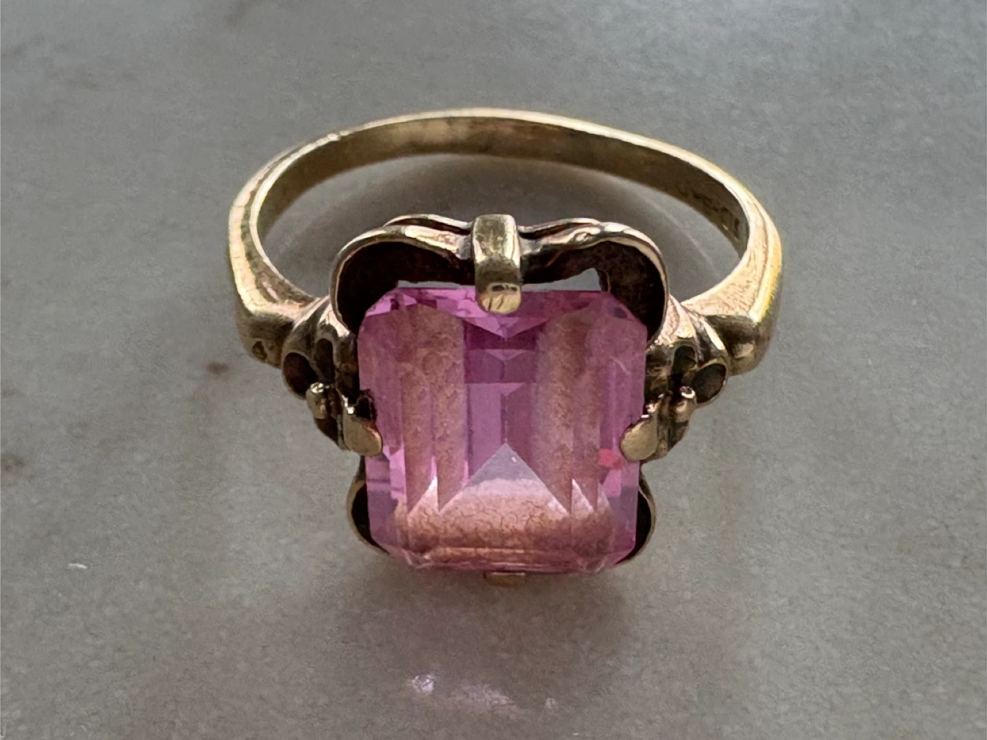 Vintage 70s SID-BAR 10k Gold Synthetic Pink Spinel Ring