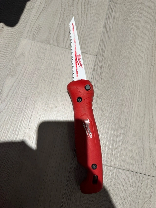 This is a used Milwaukee hand saw, perfect for small jobs around the house. It's lightweight and easy to handle. If you're reading this, it's still available! Check out my other posts for electrician tools