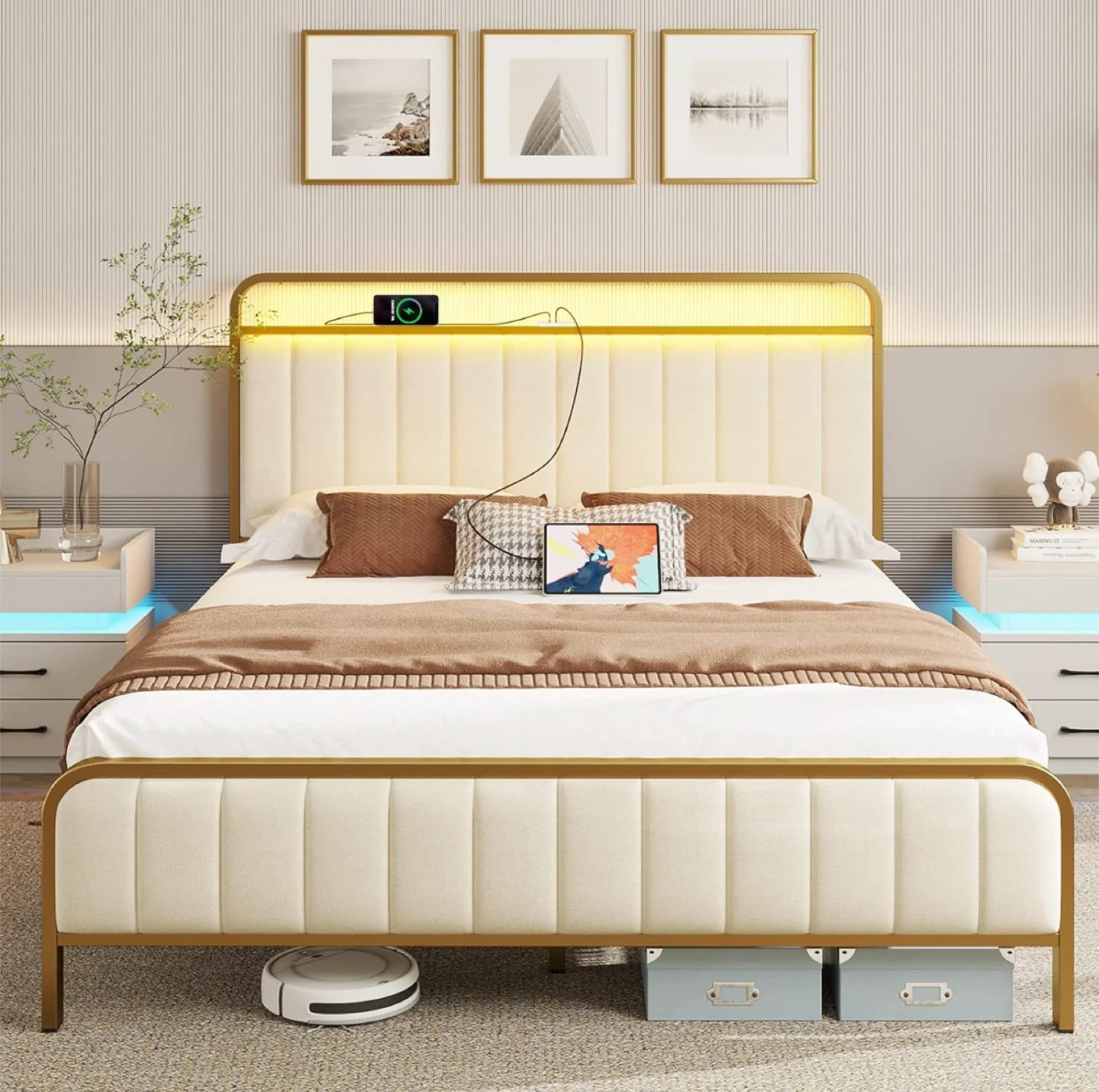 Full Size Bed Frame with LED Light Strip