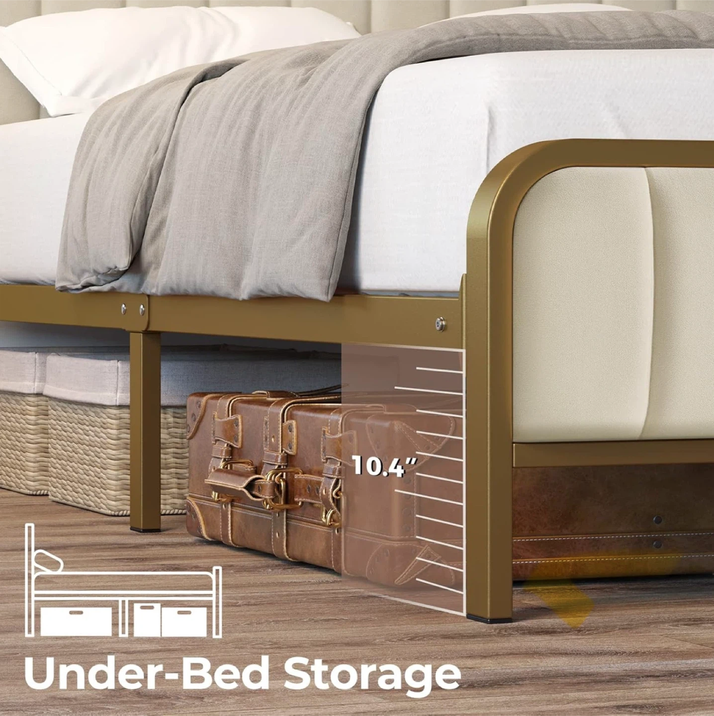 This full-size bed frame comes with a built-in