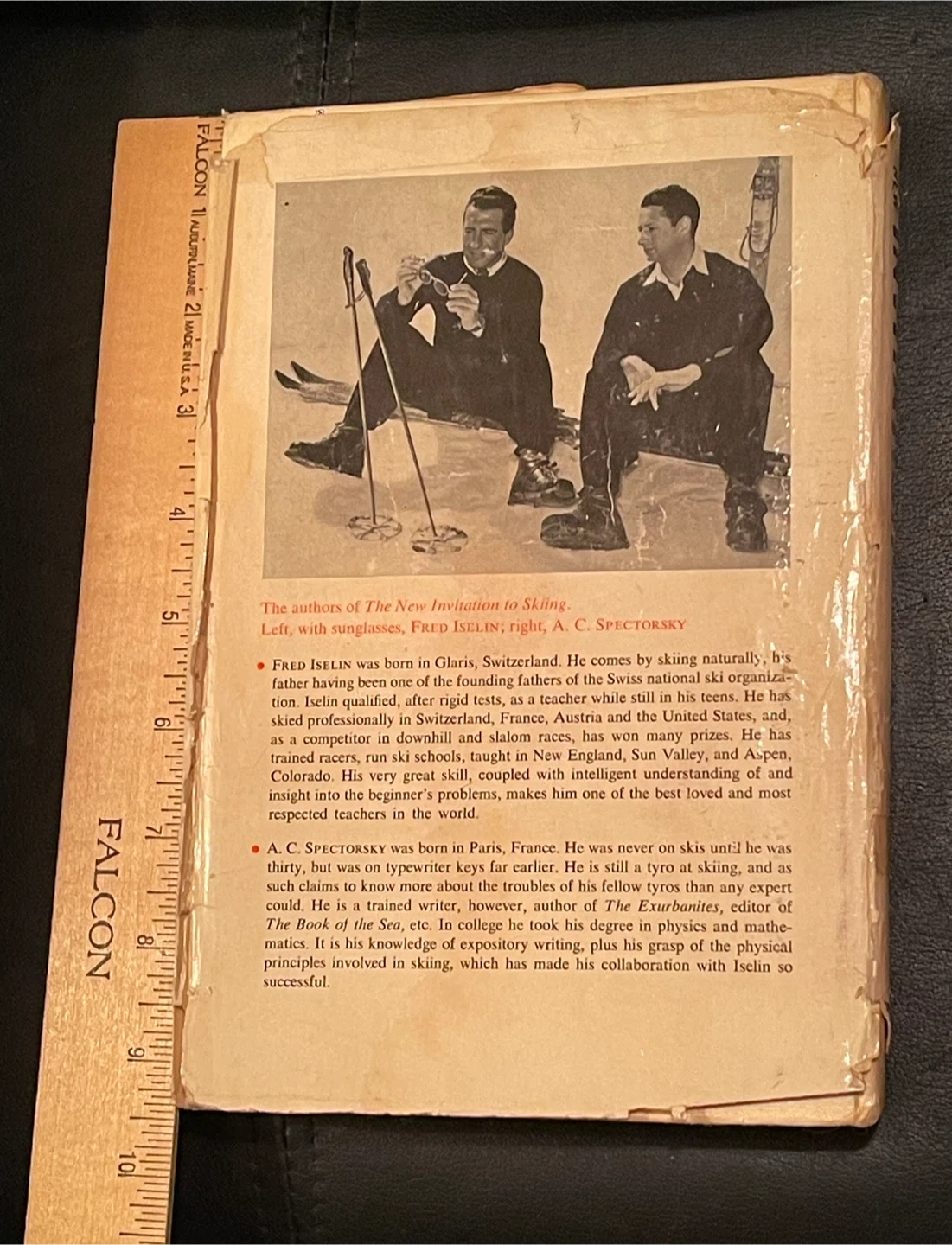 This vintage hardcover book, "The New Invitation to Skiing," is by Fred Iselin and A. C. Spectorsky. It covers the authors' extensive knowledge and experience in skiing. It's written by experts, including a champion skier and a communications specialist. Copyright 1947, 1958. 244 pages with illustrations. Good vintage condition