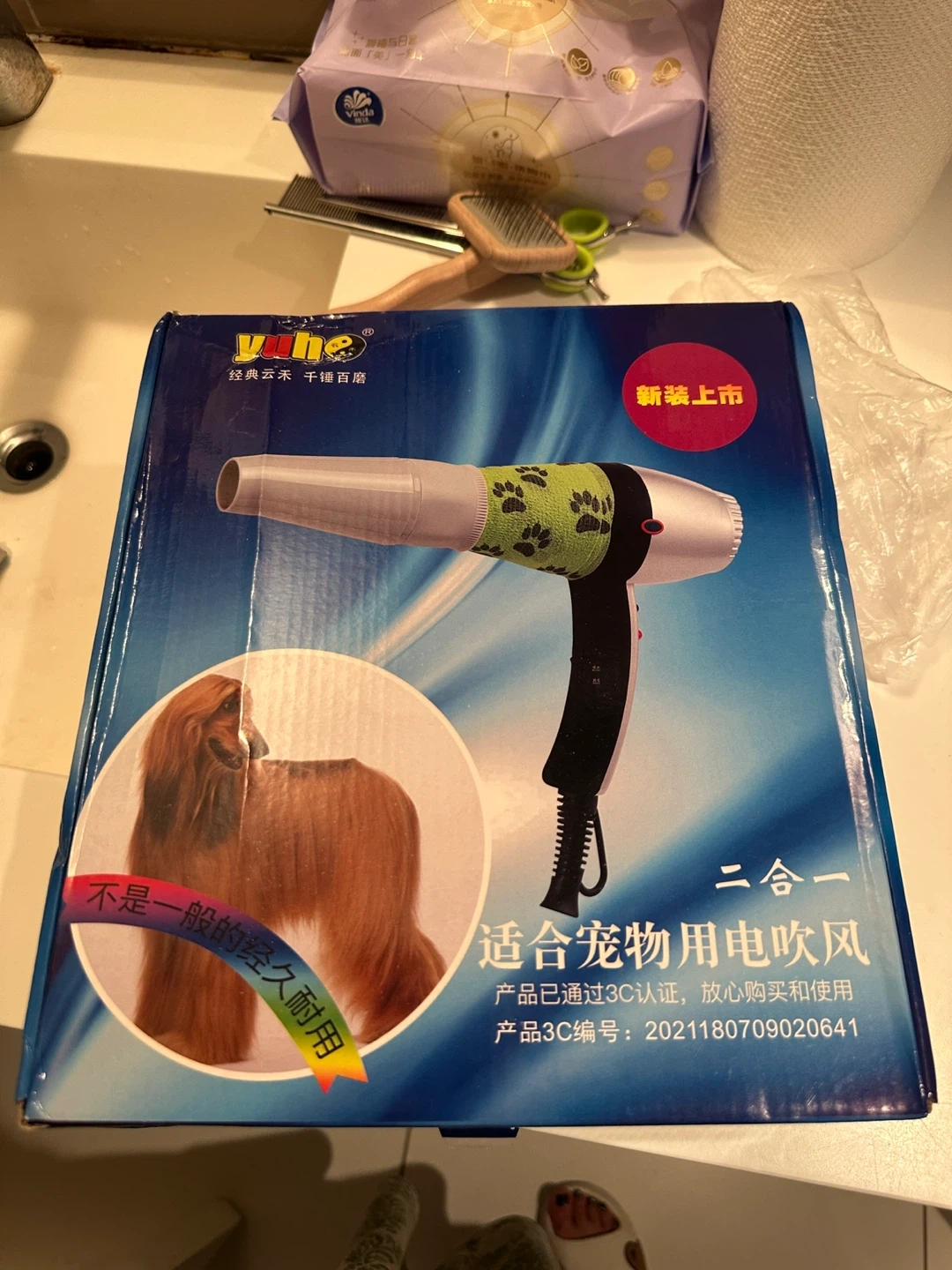 Selling a Vone pet hair dryer. It comes with the box and accessories! The product passed 3C certification, so you can use it with confidence. The manufacturing date on the box is 2021 July 09