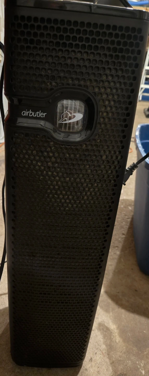 This Bionaire air purifier, model Air Butler, helps improve air quality. It has multiple settings controlled by a dial. This unit is black and uses a filter system. Good for a medium-sized room.