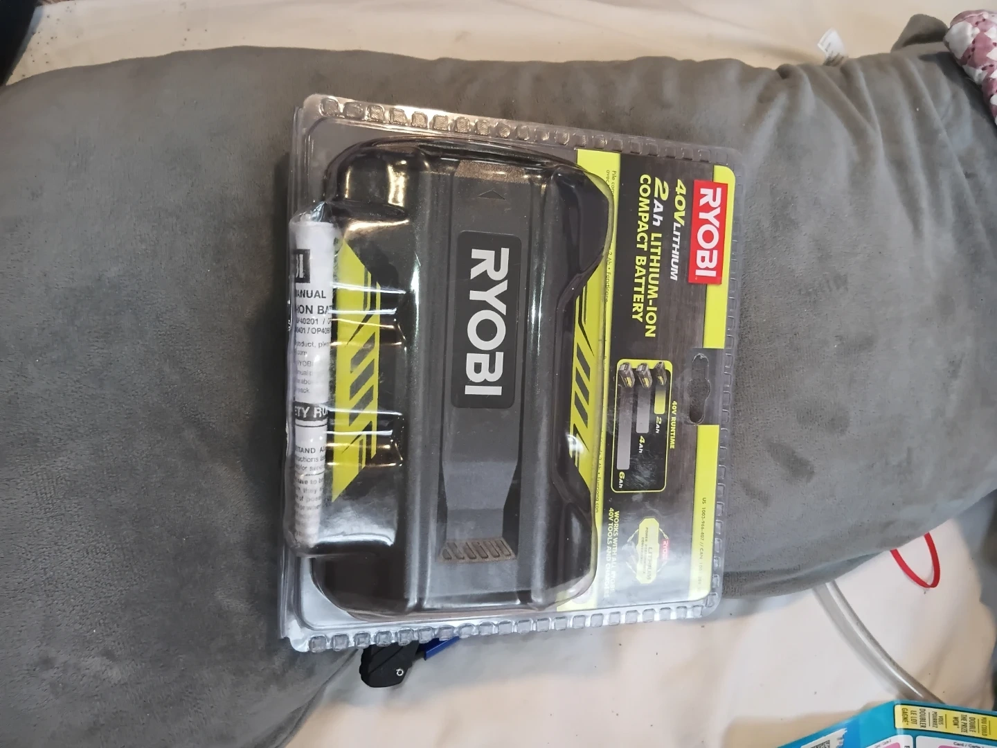 This is a Ryobi 40V Lithium-ion 2.0 Ah compact battery. It's designed for use with Ryobi 40V tools. The battery is in its original packaging.