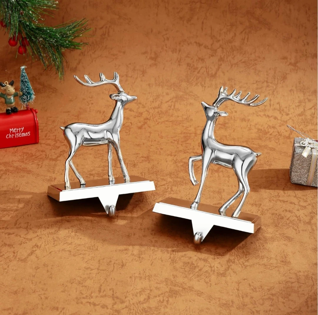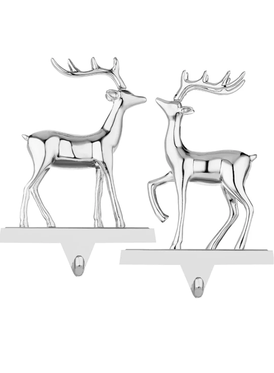 2 Silver Reindeer Stocking Hangers