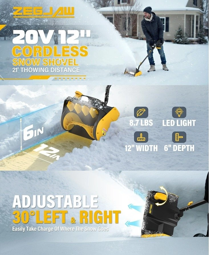 20V 12-Inch Cordless Snow Blower/Shovel with LED Light