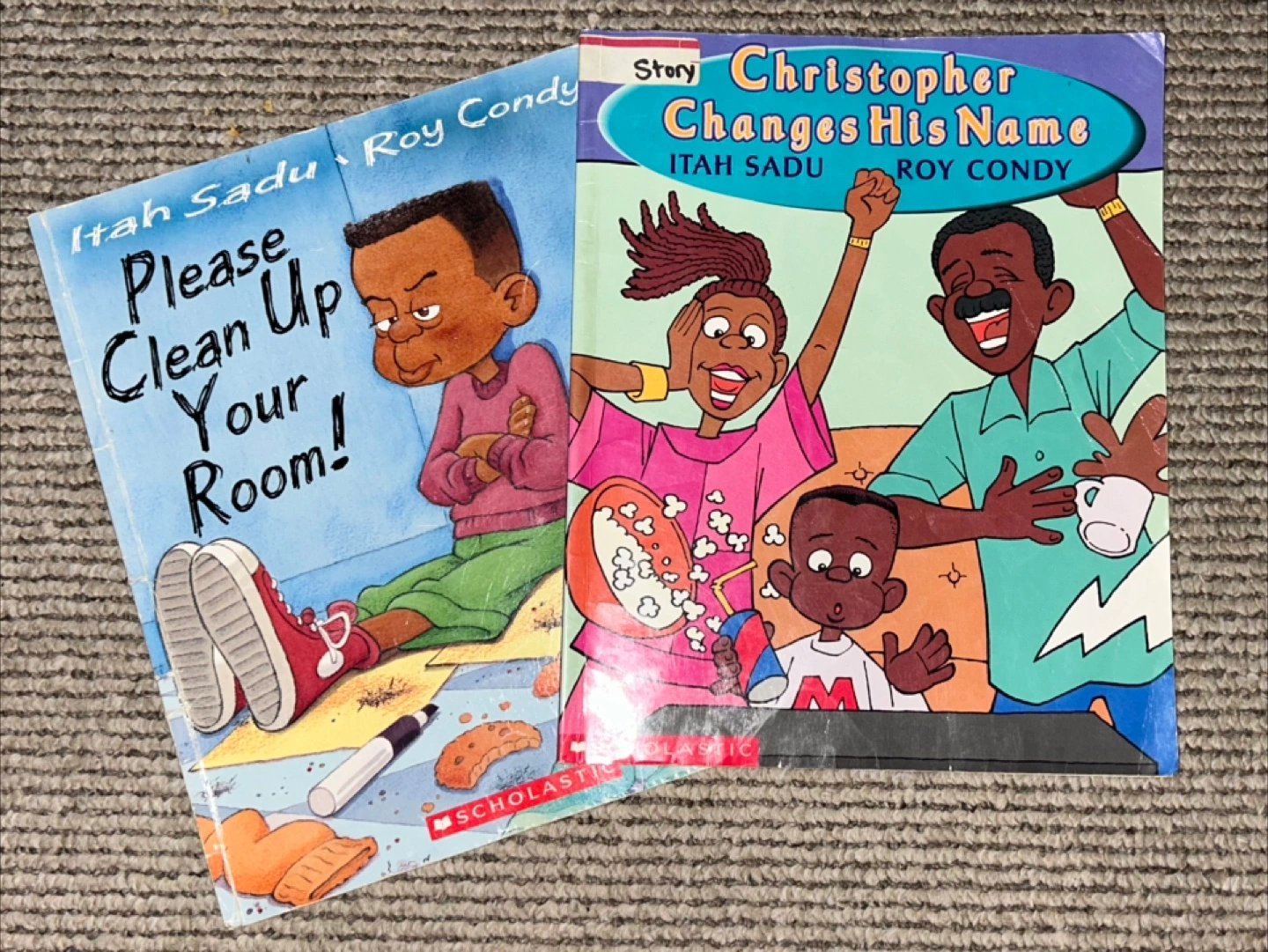 Two children's books by Itah Sadu and Roy Condy. One is titled 'Christopher Changes His Name' and the other is 'Please Clean Up Your Room!' Great books! Side note: if you don’t know the story about “The Real McCoy” I recommend you look for it!